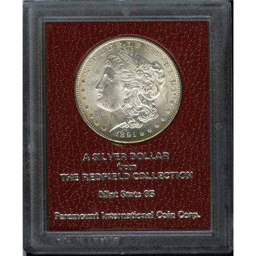 <B>1891-S<img border='0' src='http://www.heritagecoins.com/images/star.gif' width=10 height=10>$1> Morgan Dollar MS65 Paramount International (MS64).</B></I> Ex: Redfield. Gentle golden-brown and aqua borders frame untoned centers. A lustrous and attractive piece with undisturbed fields and a few faint grazes on the cheek. <BR><BR><B>Important notice:</B> Heritage usually auctions material at the rate of 200-250 lots per hour. On some occasions eBay Live bid software or the Internet may not be able to keep up with the pace of the auction. We recommend placing a realistic absentee bid now as insurance to avoid disappointment. Occasionally the auctioneer may eliminate or reject an eBay Live bid, and the auctioneer may also reopen a lot after the close of the eBay live bidding (usually because we missed an audience bid), and may reject your bid even if it shows you as the winning bidder. By bidding via eBay Live, you agree that Heritage may award the lot to another bidder at its sole discretion under the circumstances described above or any other reasonable circumstances. Since eBay bids are not shown to us until we open the lot on the floor, we treat those bids just like floor bids. In most cases the floor responds before the eBay bid is presented to us, due to Internet lag time, so for consistency we have made it a policy that floor bids are always considered first over tie eBay live bids. Also please note that all Heritage lots purchased through eBay Live carry a 20% Buyer's Premium. Please make sure you read the Terms and Conditions before you bid. This lot is being auctioned in conjunction with a live floor auction by Heritage Galleries & Auctioneers. All final auction and invoice information will be supplied by Heritage Galleries & Auctioneers, and all other information should be considered preliminary. Lot:5426 <BR><BR><B>Winning Notification and Billing:</B> After the FINAL session in this auction is complete, Heritage will send e-mail and snail mail invoices. This process normally takes several days. All final auction and invoice information will be supplied by Heritage Galleries & Auctioneers, and all other information should be considered preliminary. <BR><BR>This auction will be conducted on a live auction floor and over the Internet through eBay Live. If you choose to place an absentee bid, please take a moment to <font color='#0000ff'><u><a href='http://pages.ebay.com/liveauctions/help/before/laabsentee.html'>learn how eBay Live absentee bidding works</a></u></font><font color='#000000'>