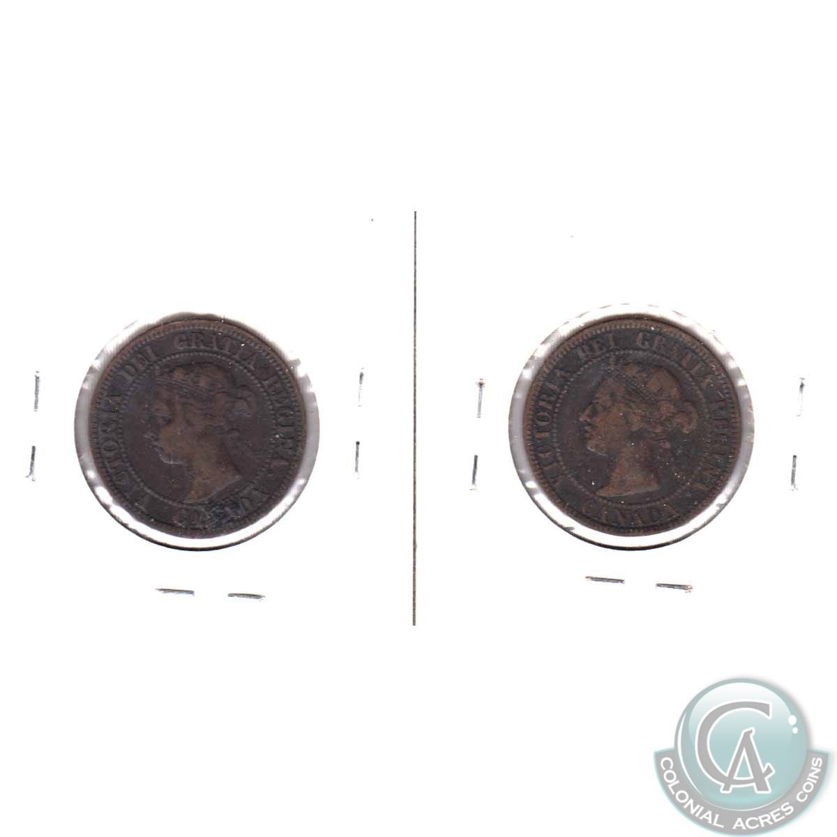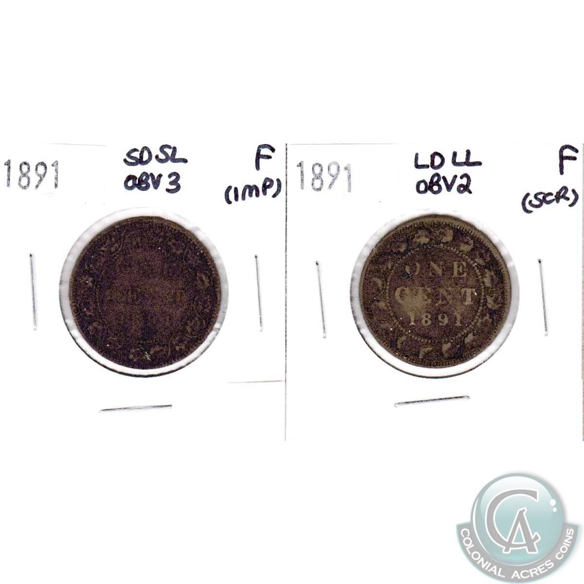 1891 SD SL Obv 3 (impaired) & 1891 LD LL Obv 2 (scratched) Canada 1-cent in Fine Condition. 2pcs