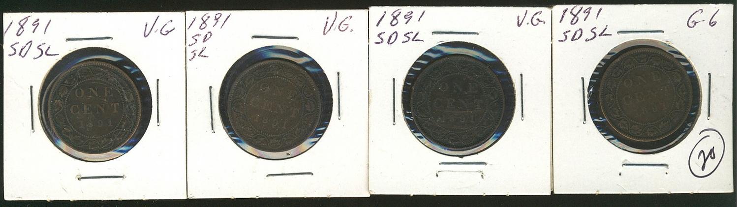 1891 SDSL 1¢, G-6 to VG-8, lot of 4 pieces.