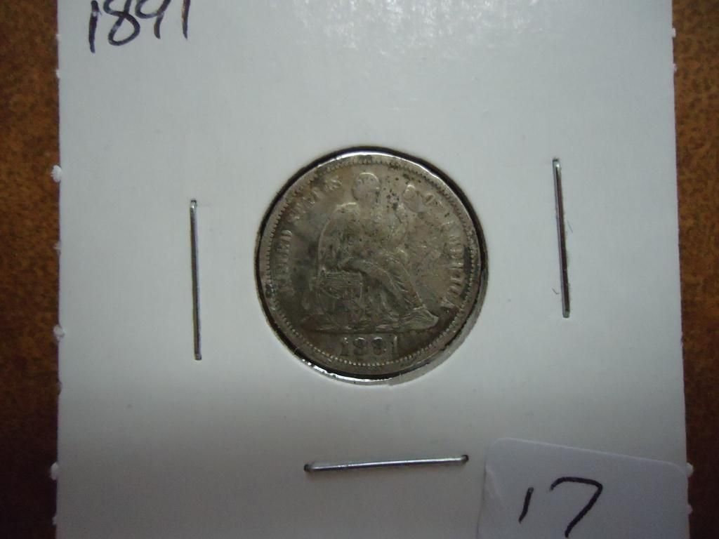 1891 SEATED LIBERTY DIME (VERY FINE)