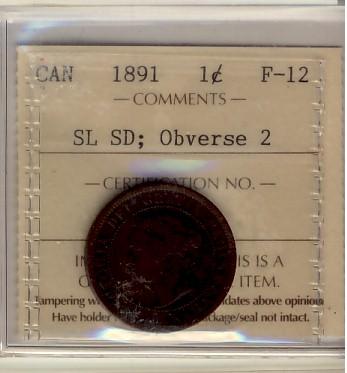 1891 SL SD Obv 2 1¢ ICCS F12