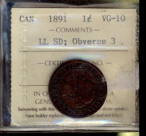 1891 SL SD Obv 3 1¢ ICCS VG10.