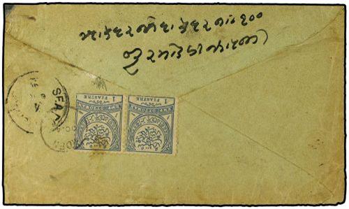 1891 SOBRE circulado a BOMBAY franqueado con sellos de Turquia de 1 pi. gris (Sc. 69) matasellados en transito en Aden. Probablemente la carta sea originaria del Yemen. Opinion Holcombe.