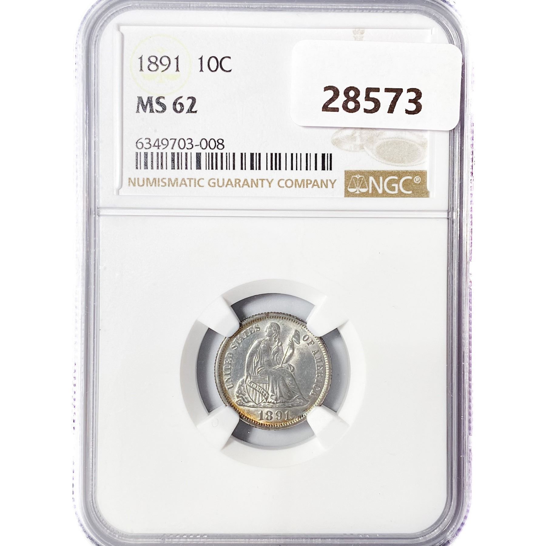 1891 Seated Liberty Dime NGC MS62