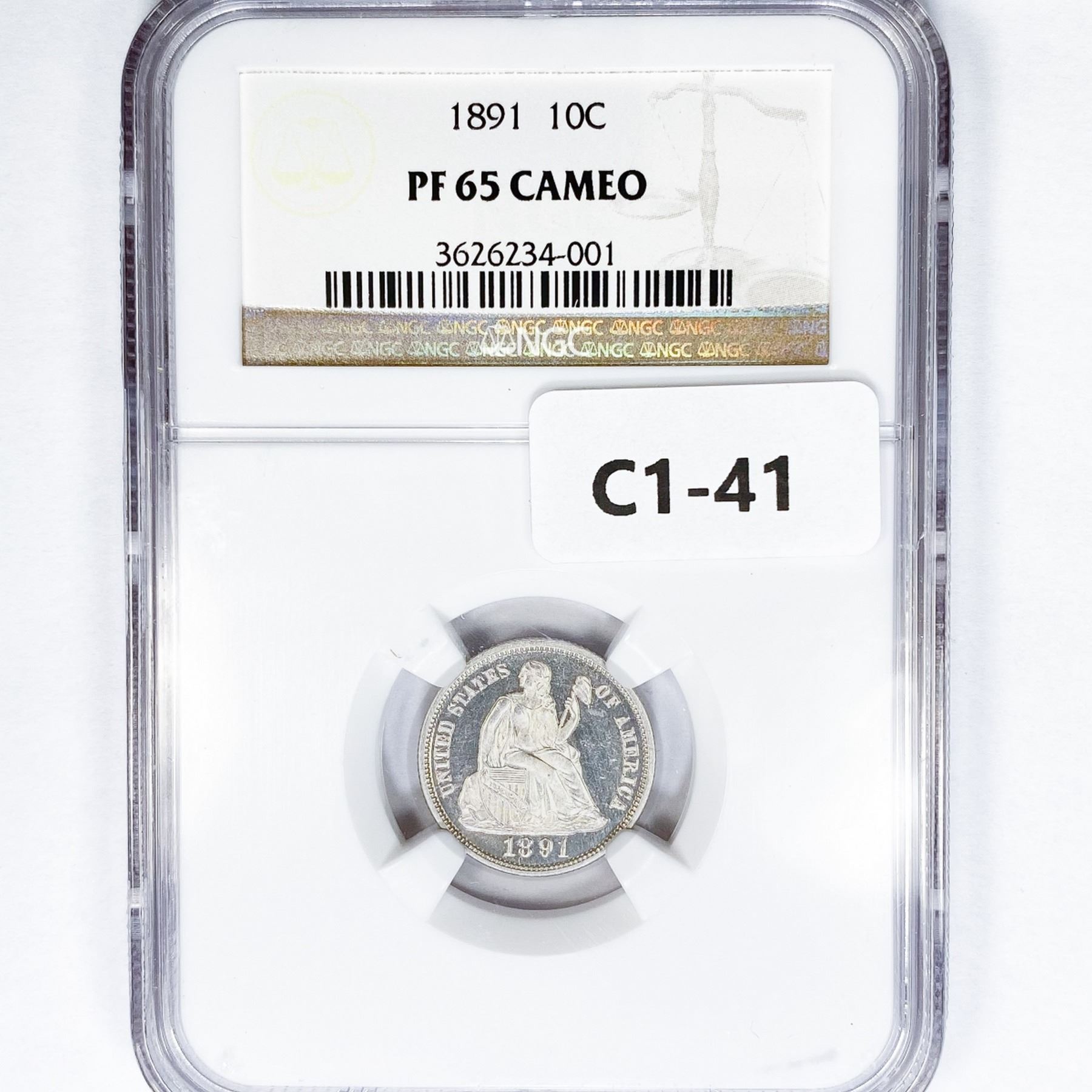 1891 Seated Liberty Dime NGC PF65 CAMEO