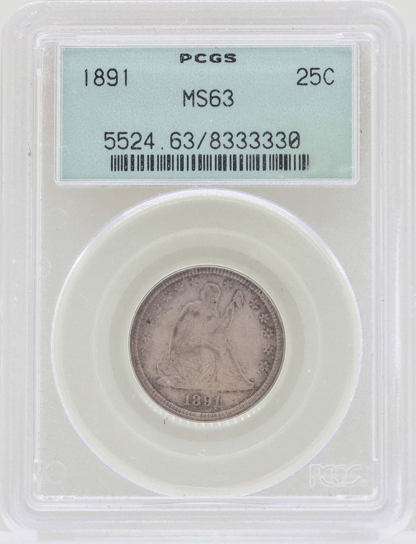 One 1891 Seated Liberty Quarter Coin PCGS MS63.