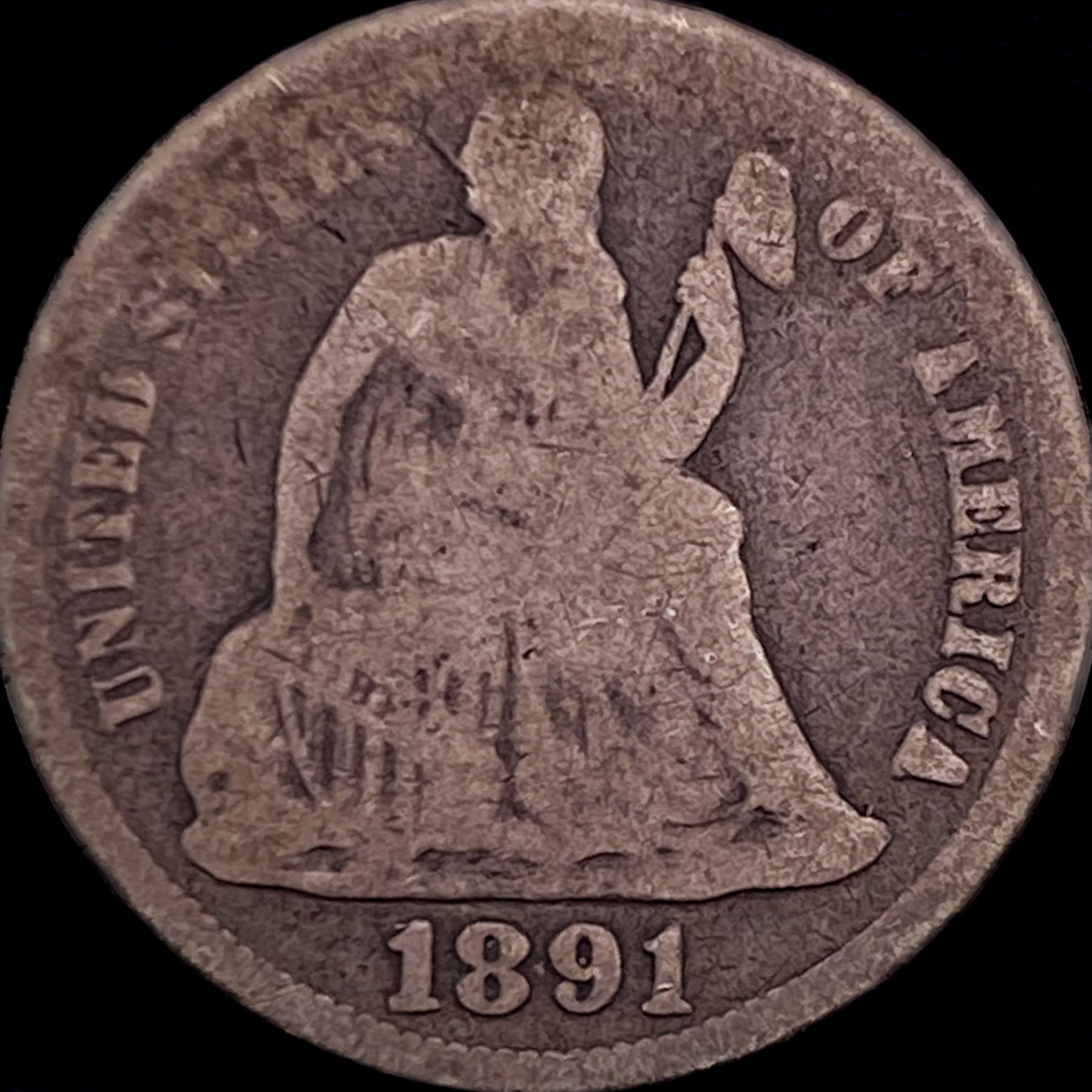 1891 Silver Seated Liberty Dime NICELY CIRCULATED