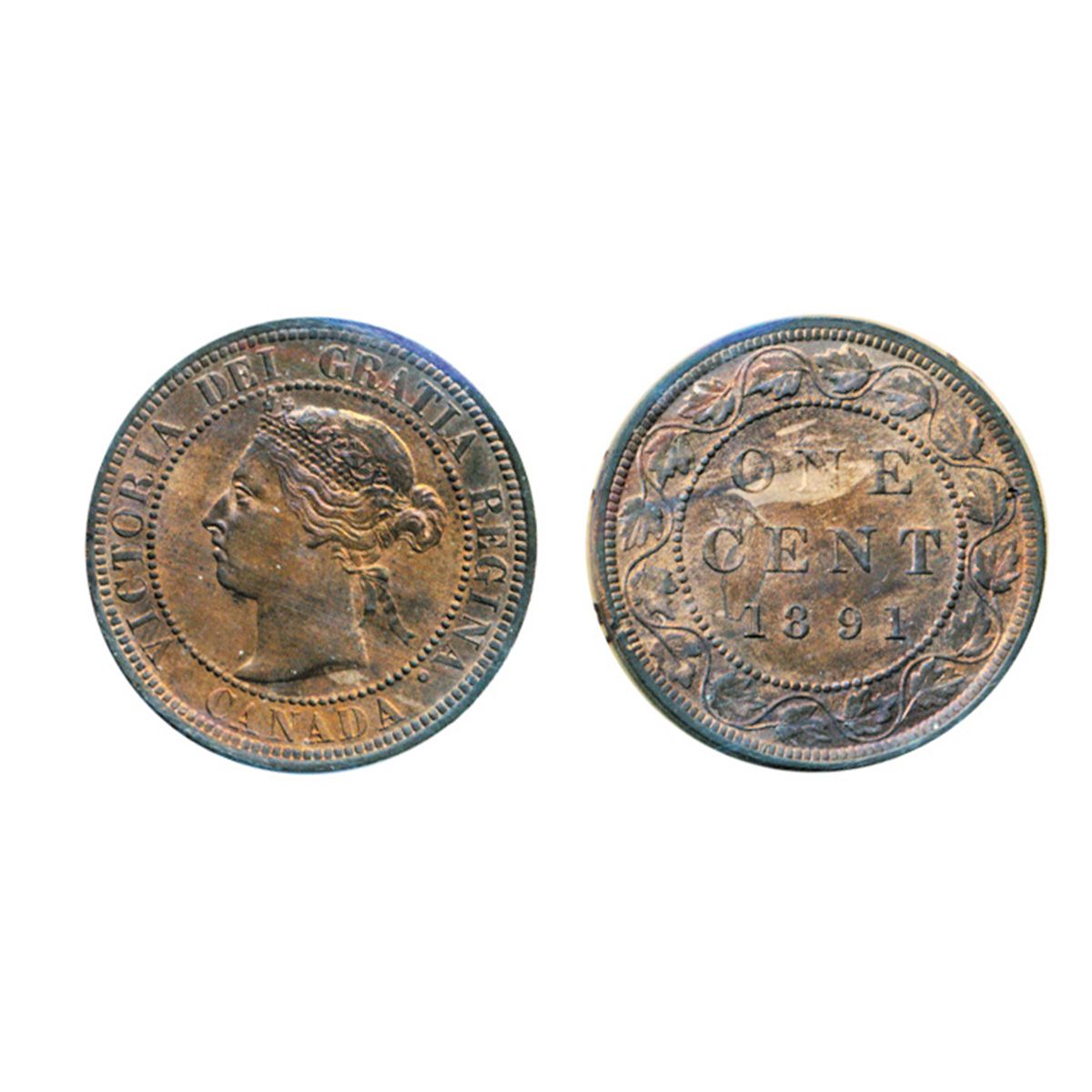 1891. Small Date, Large Leaves. ICCS Mint State-63. Red-Brown. 30% red luster. Ex. Bowers & Merena, 1990 Rushbar collection.