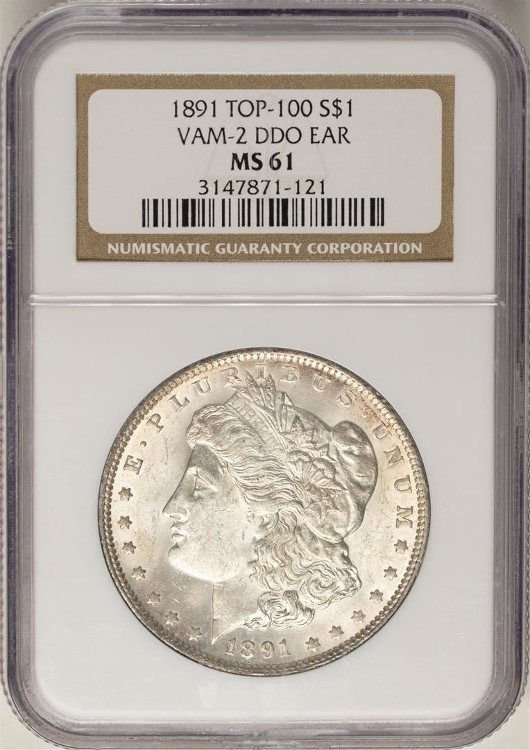 One 1891 VAM-2 DDO Ear $1 Morgan Silver Dollar Coin NGC MS61 Top 100. NGC Certified.