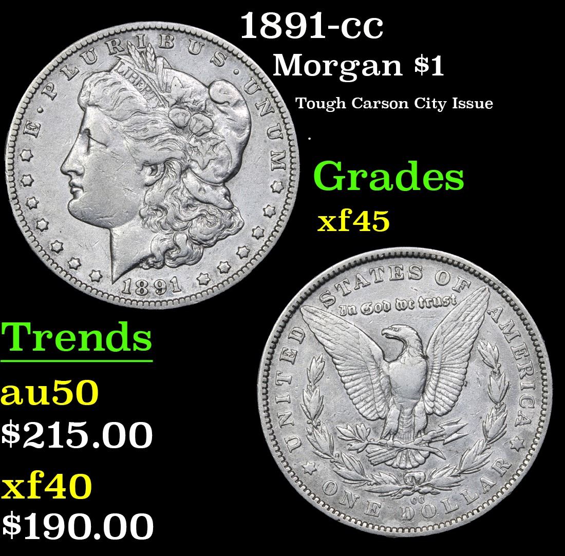 1891-cc Morgan Dollar $1 Grades xf+. Tough Carson City Issue