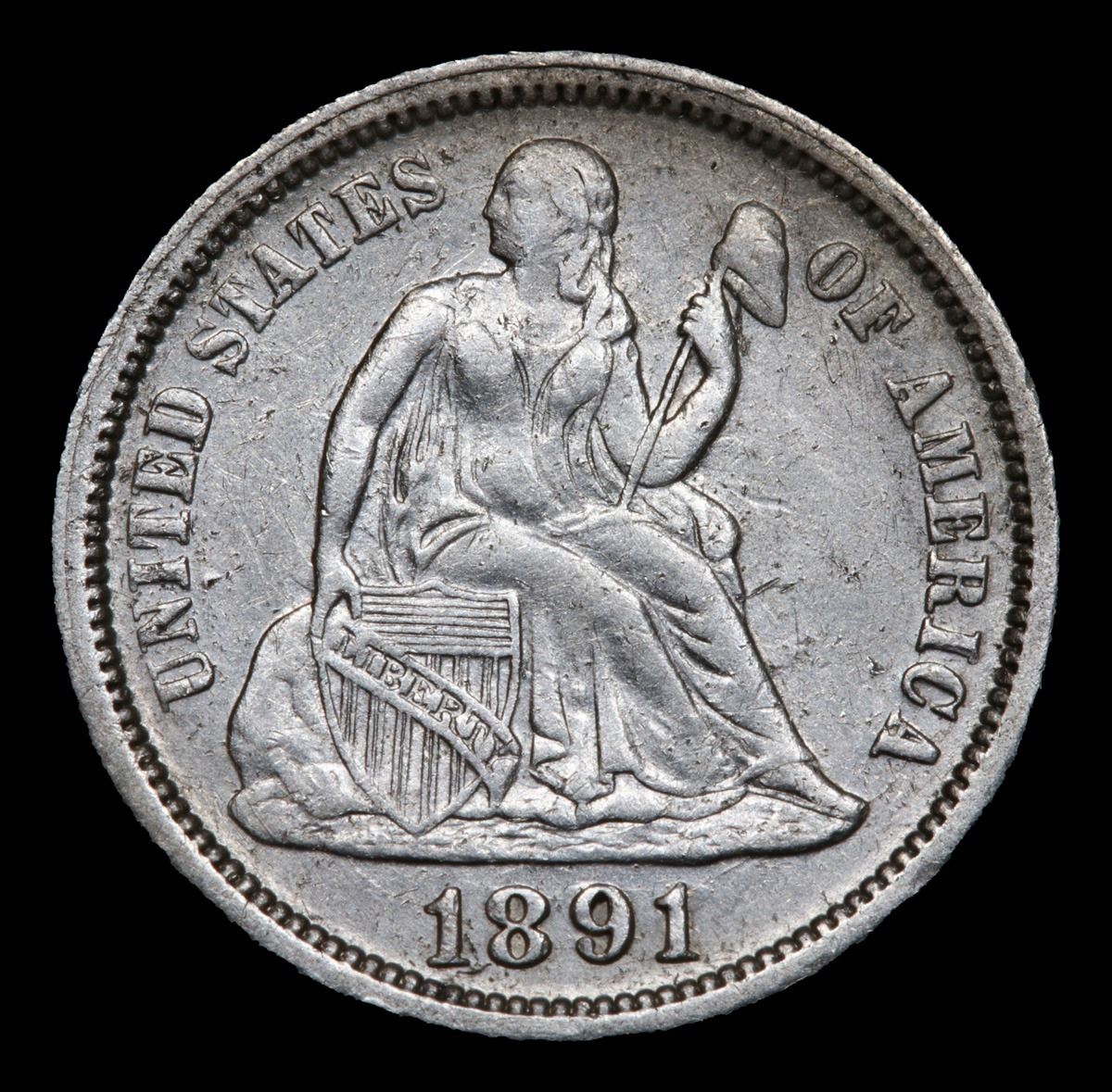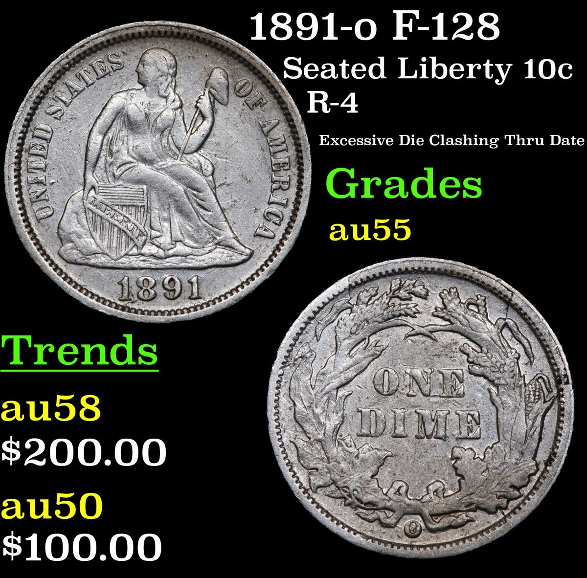 1891-o F-128 R-4 Excessive Die Clashing Thru Date Seated Liberty Dime 10c Grades Choice AU.