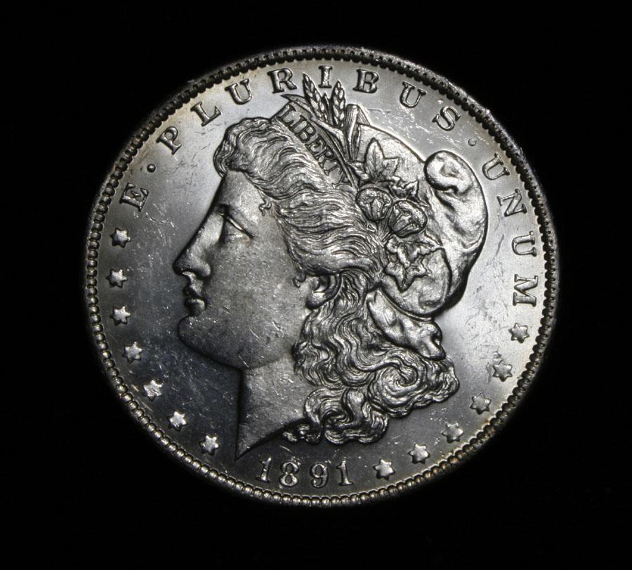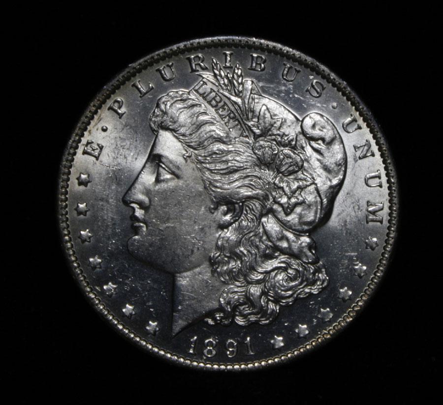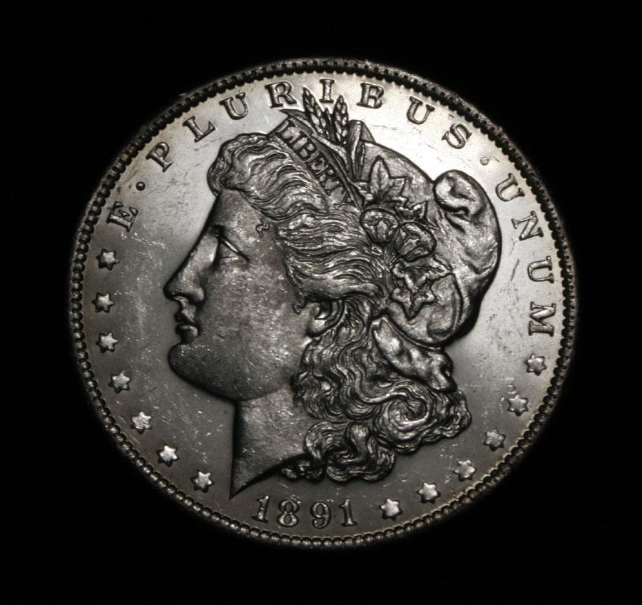 A beautiful Proof Like Issue. This coin is a solid 64 and a solid Proof Like issue of a tough date in this grade. Nice Frosted Devices and shallow Mirrors. String Breast Feathers. The only Price guide which lists Proof Like Morgan's is the Bluesheet. This guide is for Sight Unseen but Graded coins. It lists an ms64 PL 1891-o at $1000, but that's sight unseen and it could be very ugly, you can see this example is very nice. But I will still say the Estimated Value is $1000