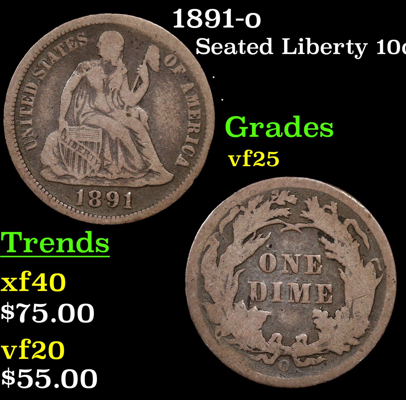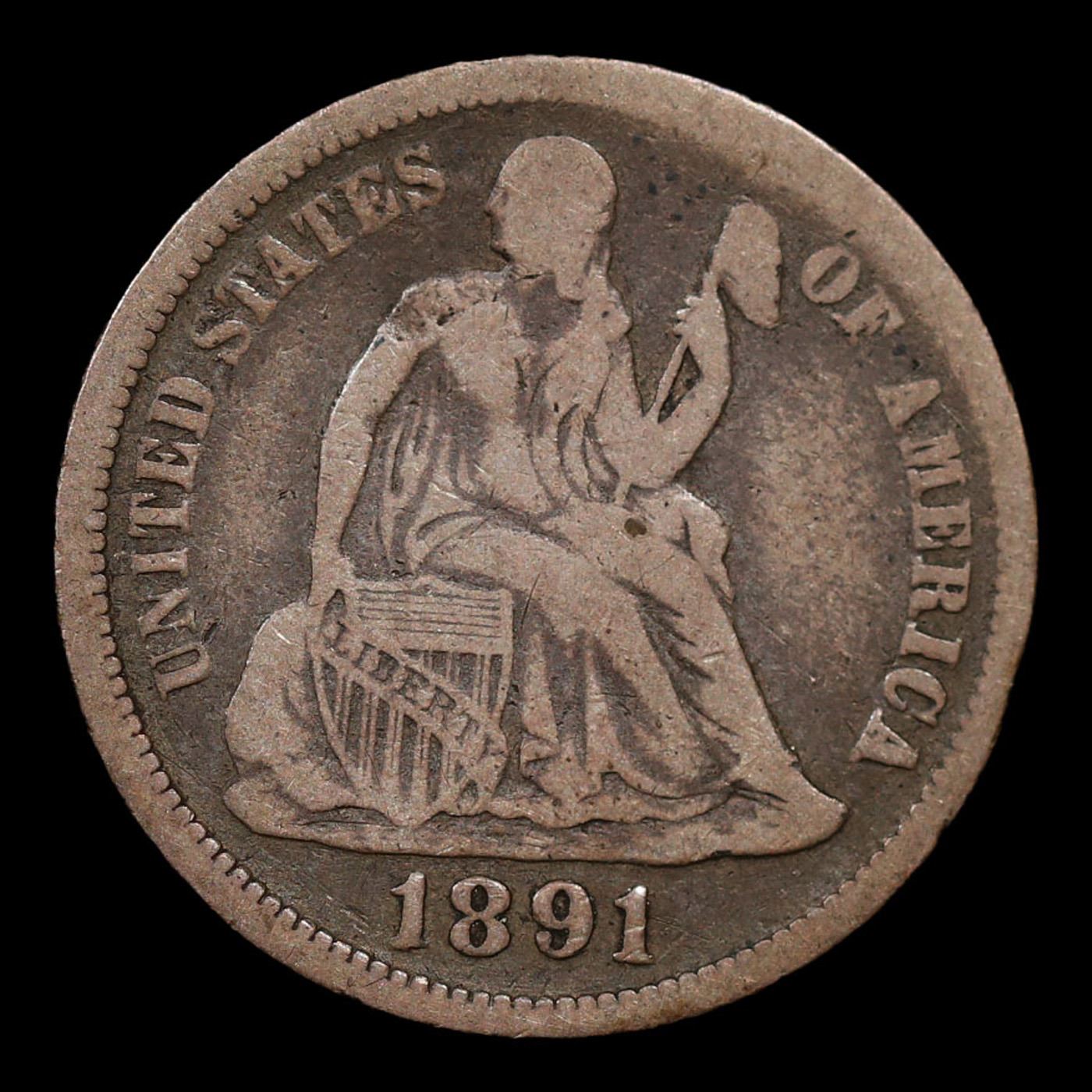 1891-o Seated Liberty Dime 10c Grades vf+.