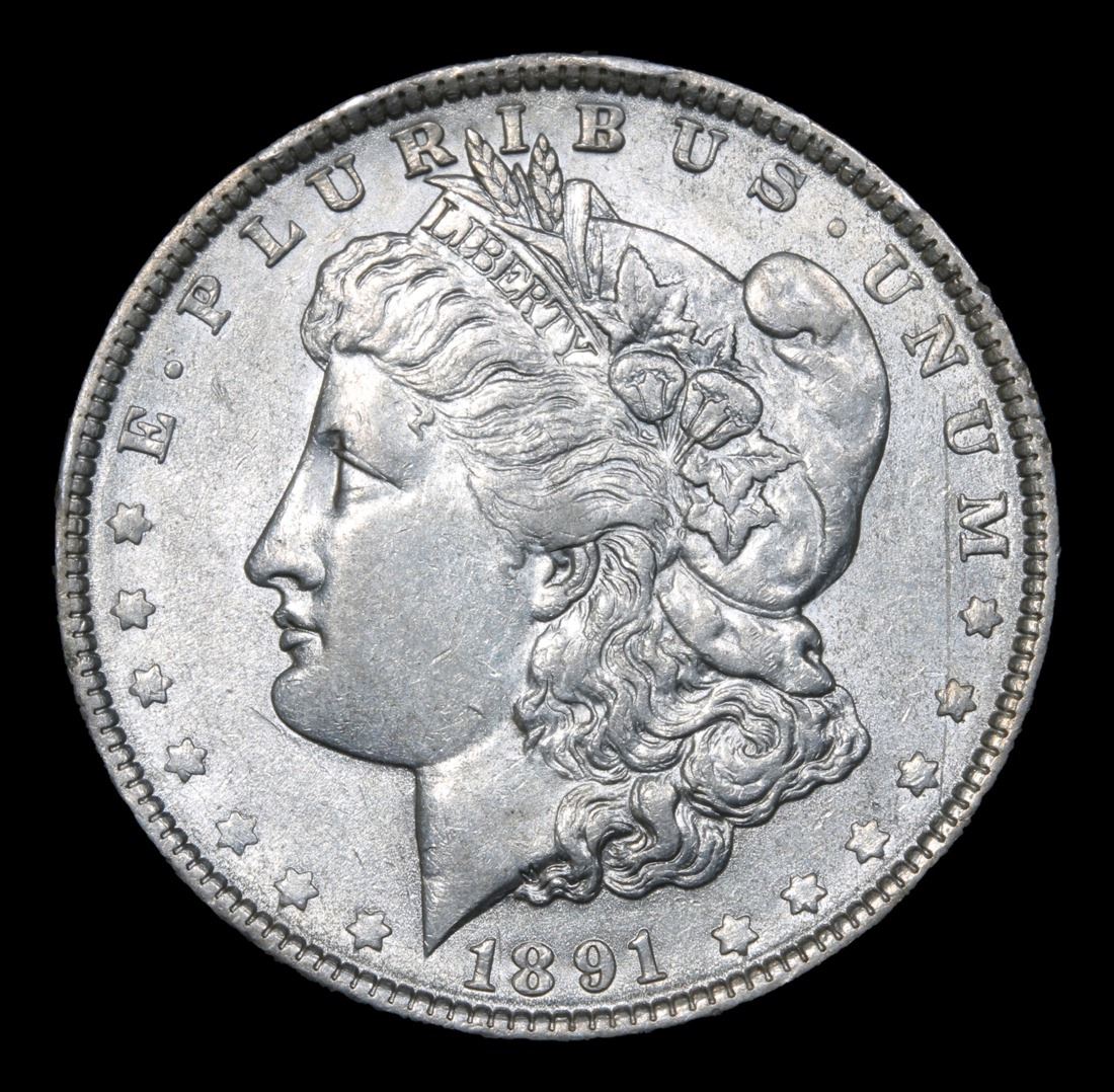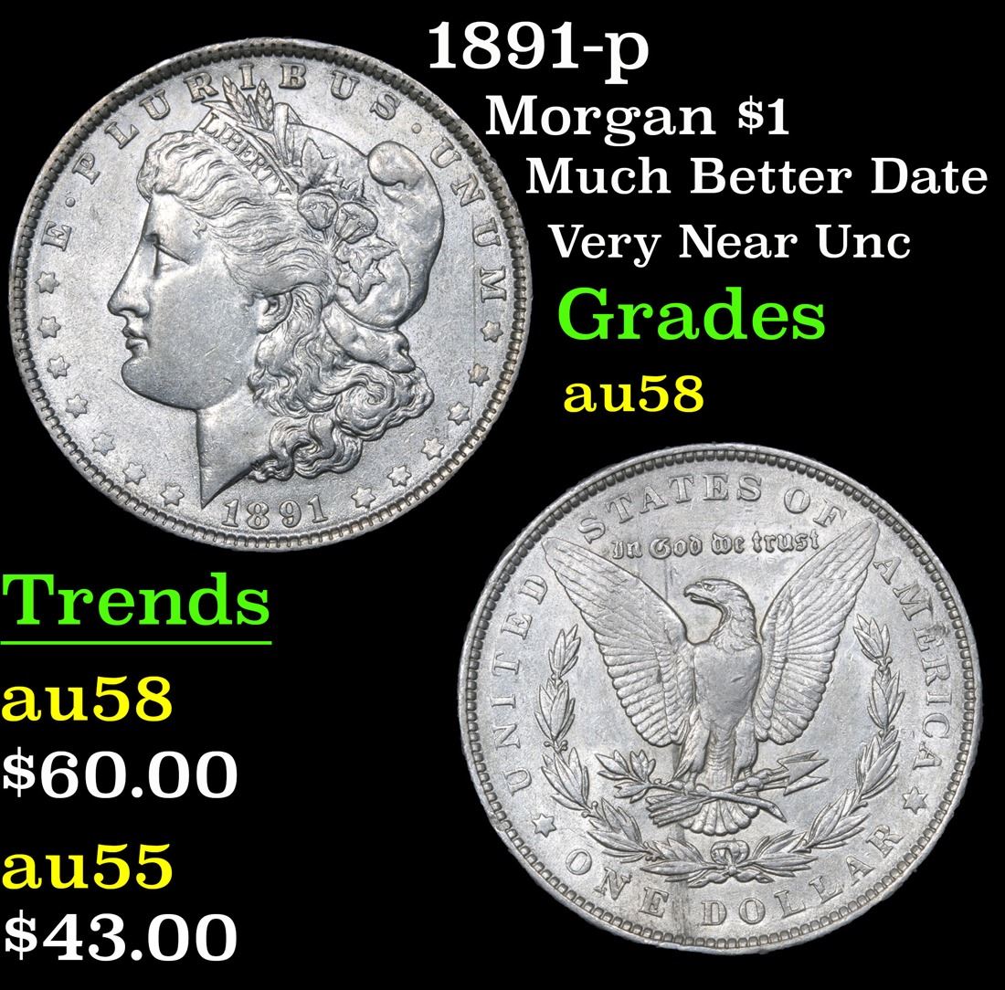 1891-p Much Better Date Very Near Unc Morgan Dollar $1 Grades Choice AU/BU Slider.