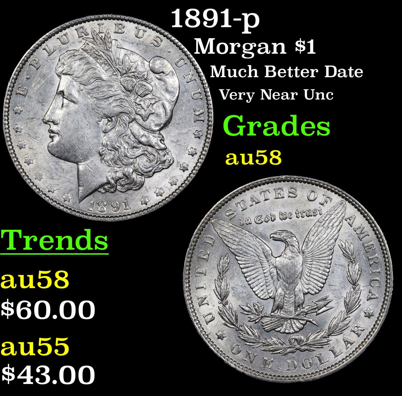 1891-p Morgan Dollar $1 Grades Choice AU/BU Slider.