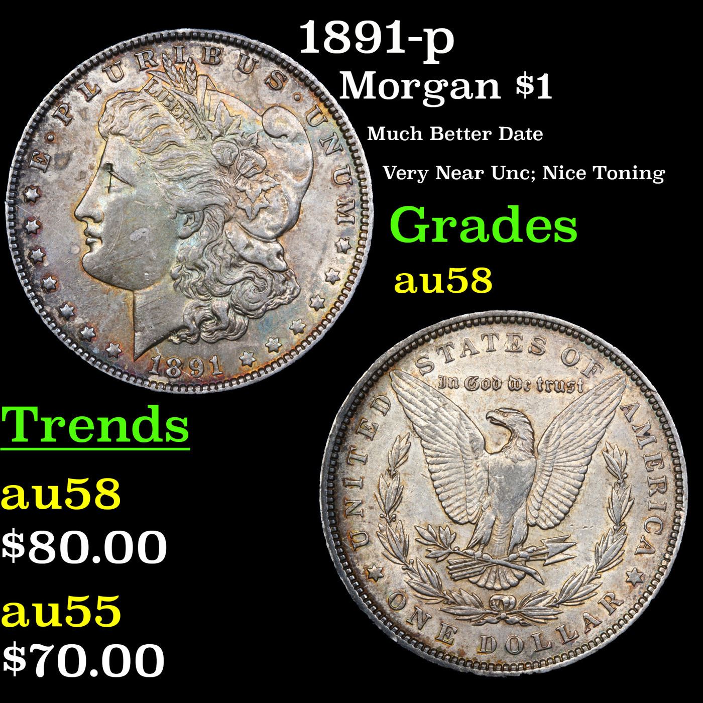 1891-p Morgan Dollar $1 Grades Choice AU/BU Slider.