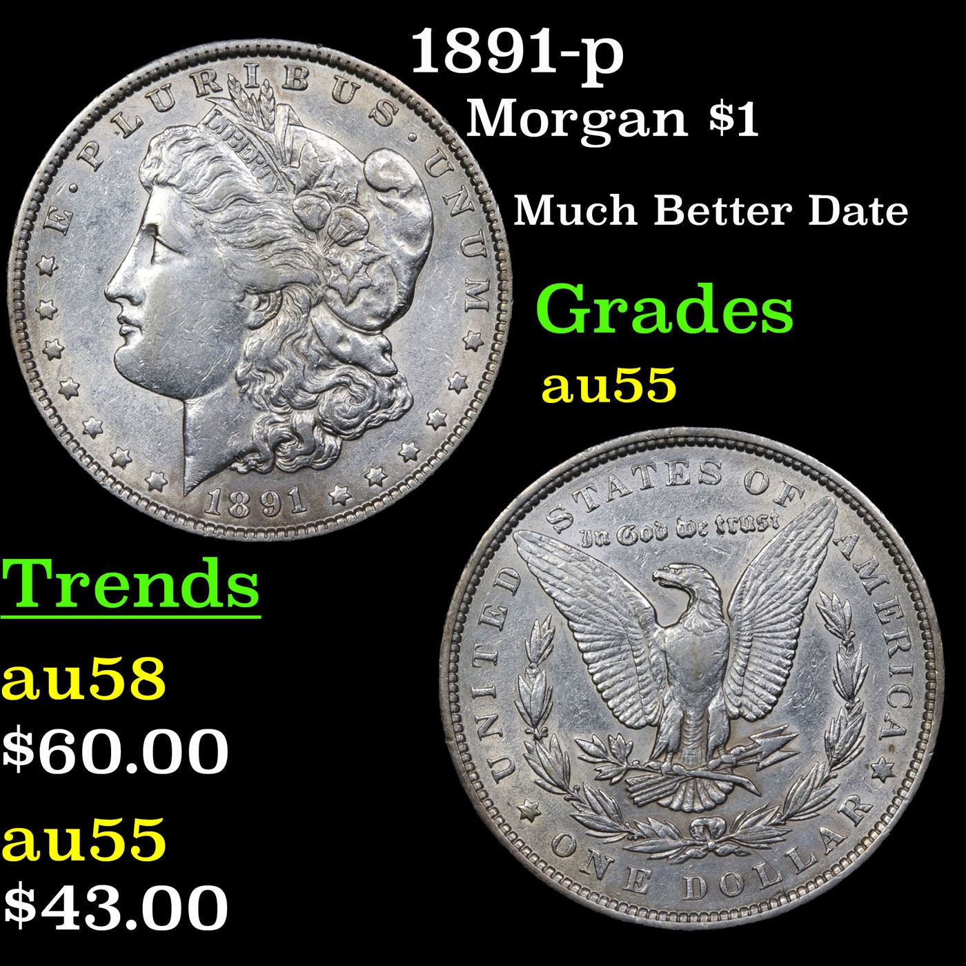 1891-p Morgan Dollar $1 Grades Choice AU.