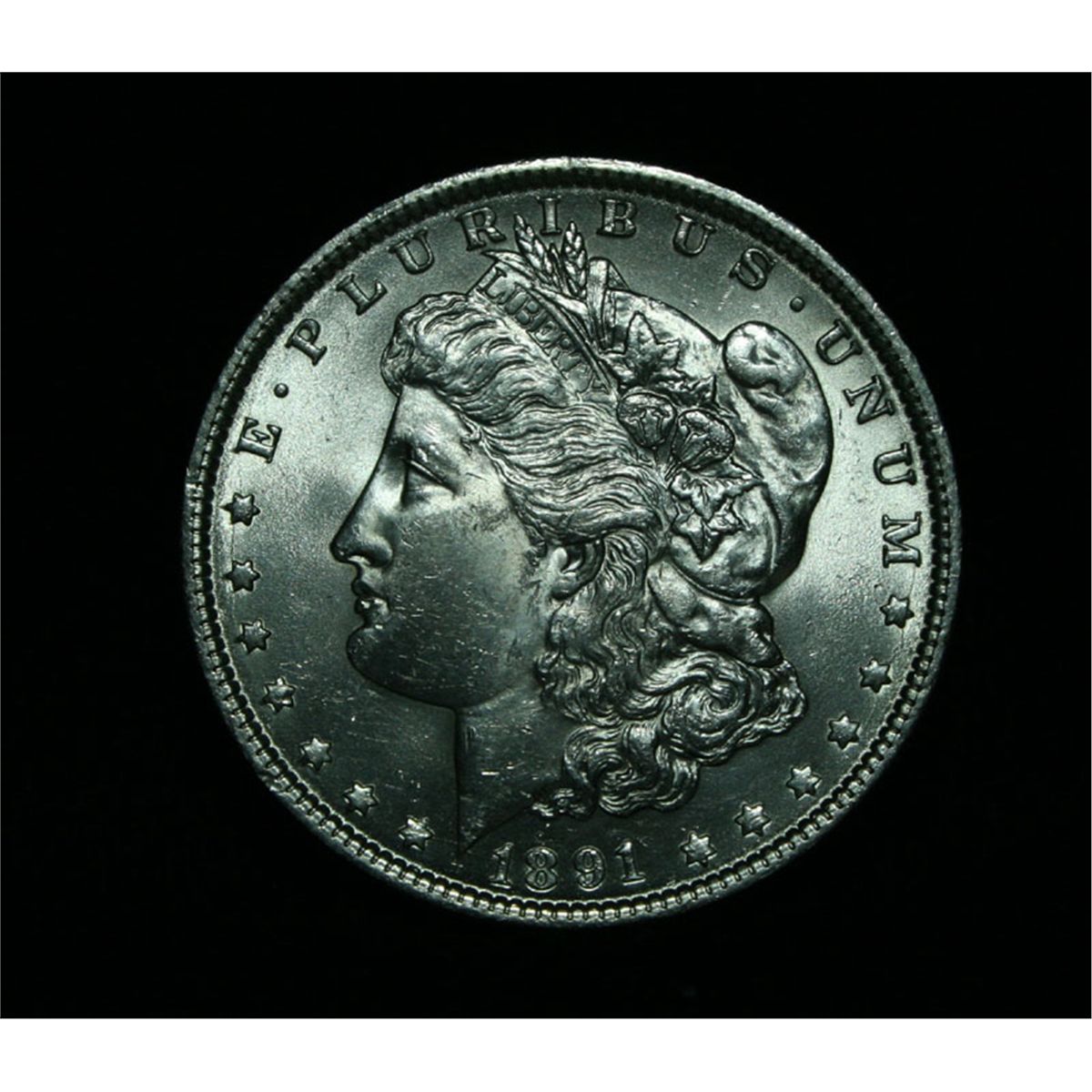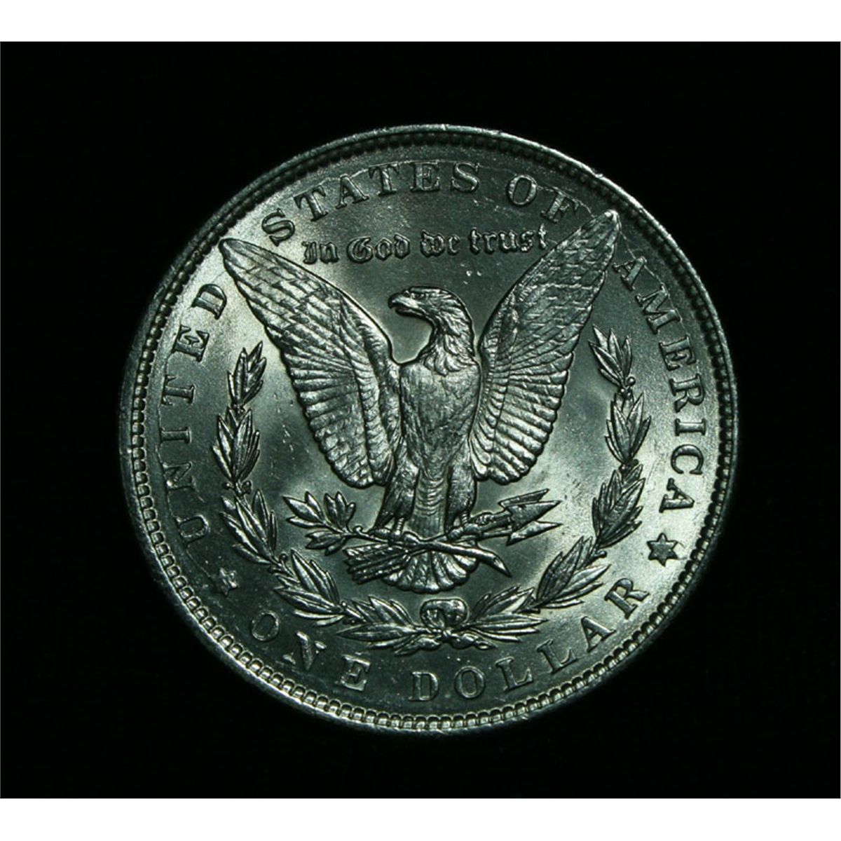 A Blast white example with great luster and a good strike. Very interesting unlisted Variety. It has a slanted date, and only 4 die pairings are listed with a slanted date and none have die pitting on the eagle's wing as this example does. Possible Discovery VAM. The Wholesale Greysheet lists an ms64 at $775. Estimated Value $800