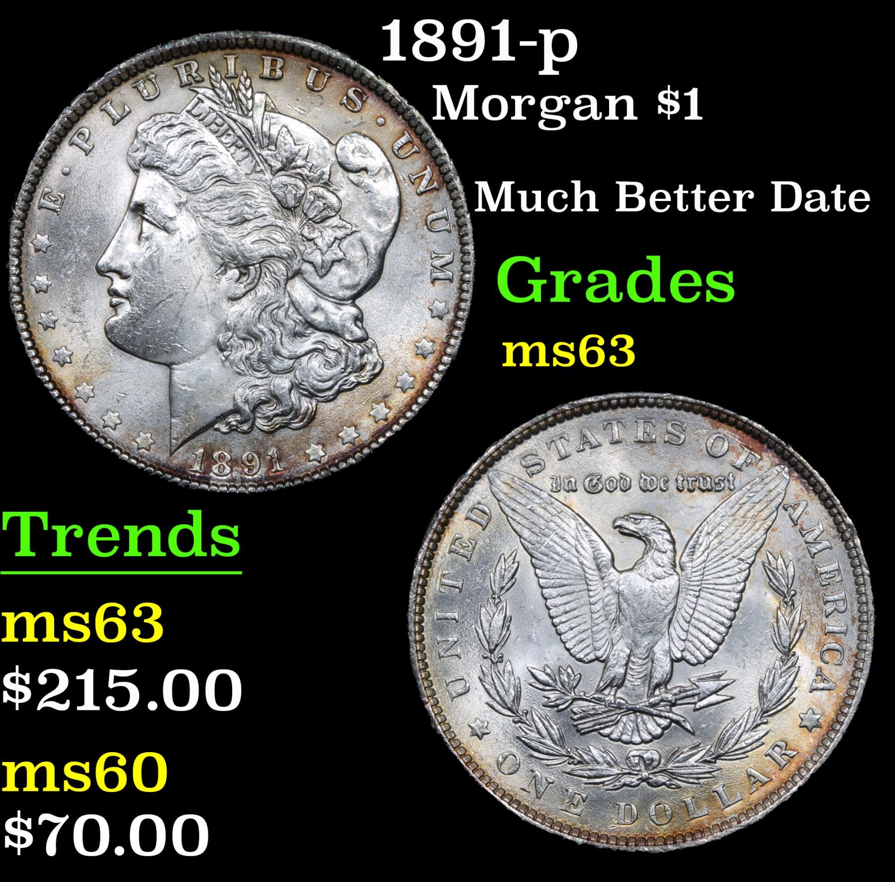 1891-p Much Better Date . Morgan Dollar $1 Grades Select Unc.