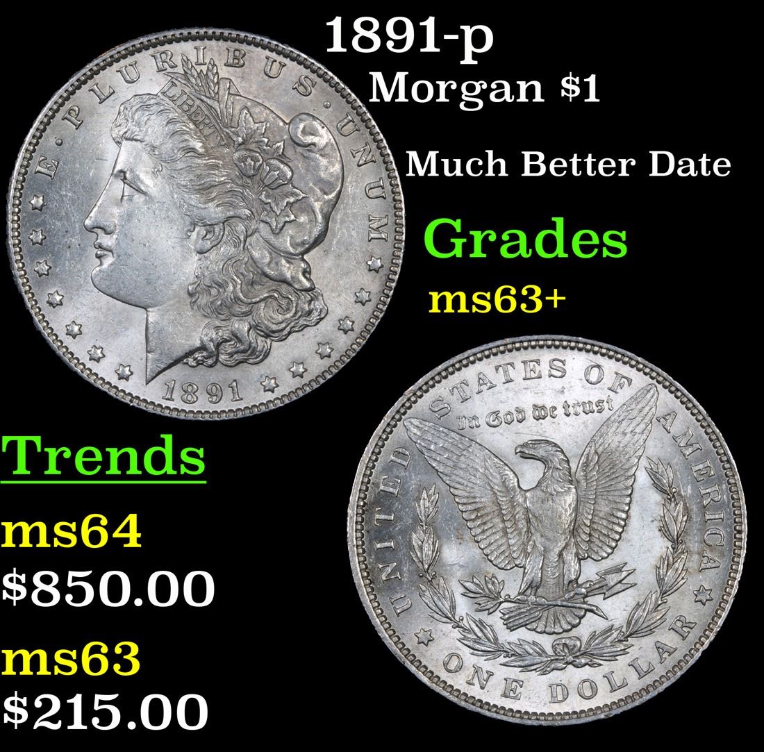 1891-p Much Better Date . Morgan Dollar $1 Grades Select+ Unc. A Corey's Pick, Bid to Win Coin