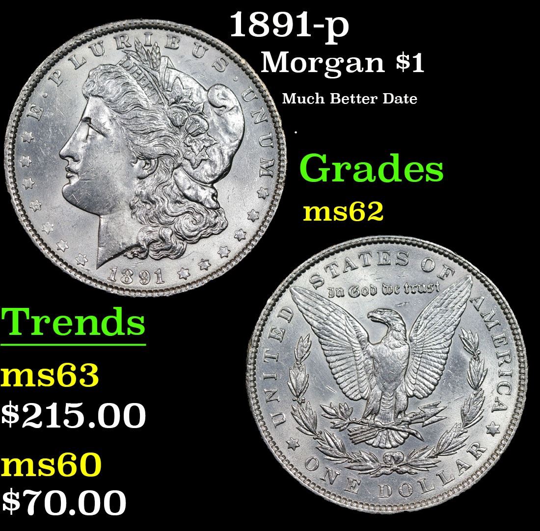 1891-p Much Better Date . Morgan Dollar $1 Grades Select Unc.