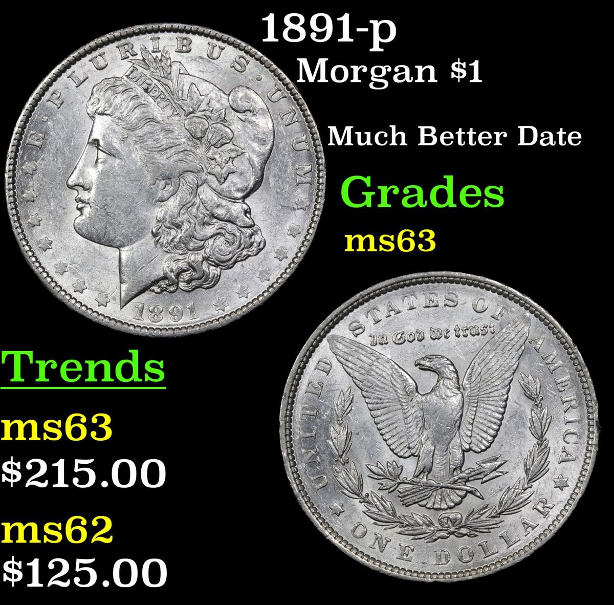 1891-p Much Better Date . Morgan Dollar $1 Grades Select Unc.