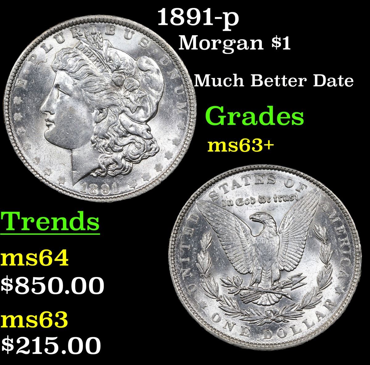 1891-p Much Better Date . Morgan Dollar $1 Grades Select+ Unc.