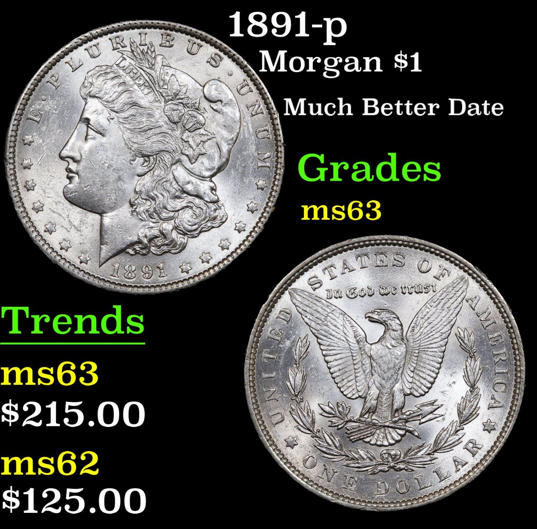 1891-p Much Better Date . Morgan Dollar $1 Grades Select Unc.