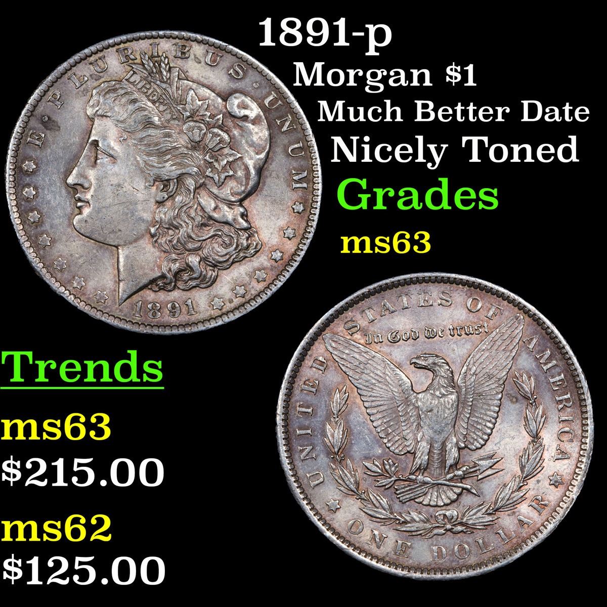 1891-p Much Better Date Nicely Toned Morgan Dollar $1 Grades Select Unc.