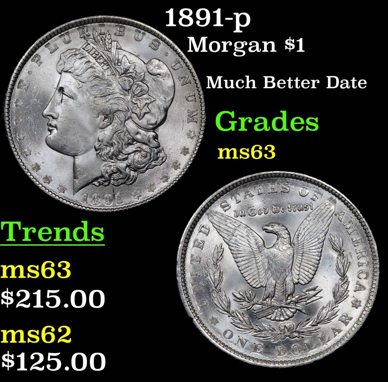 1891-p Much Better Date . Morgan Dollar $1 Grades Select Unc.
