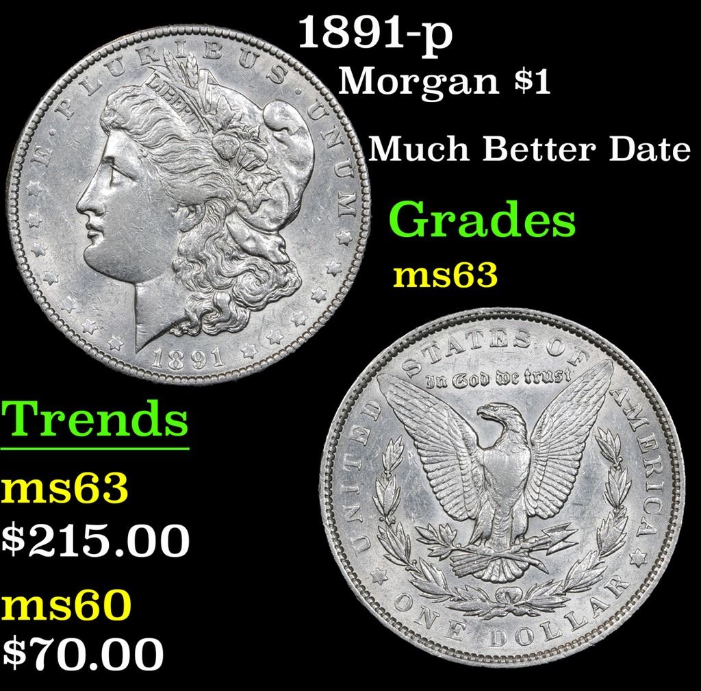 1891-p Much Better Date Morgan Dollar $1 Grades Select Unc.