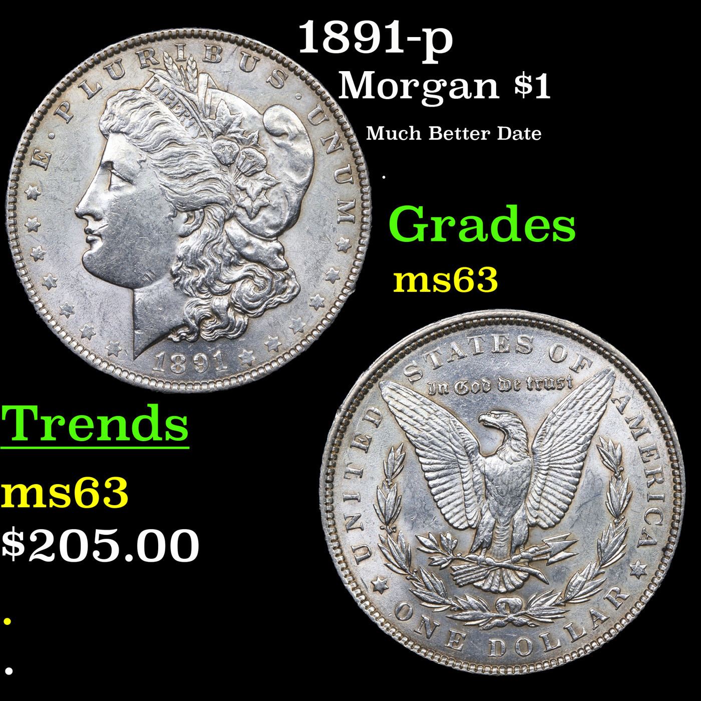 1891-p Morgan Dollar $1 Grades Select Unc.