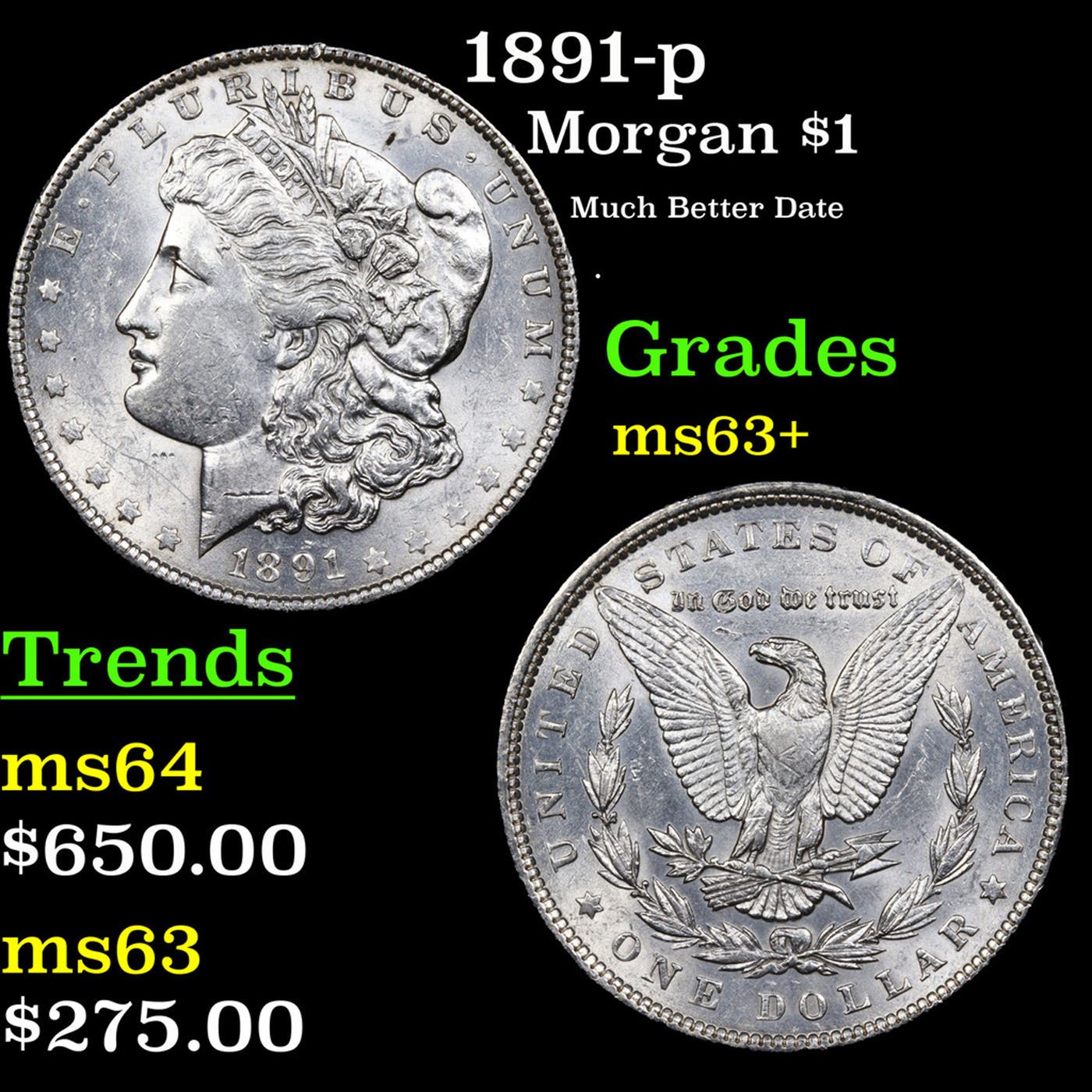 1891-p Morgan Dollar $1 Grades Select Unc