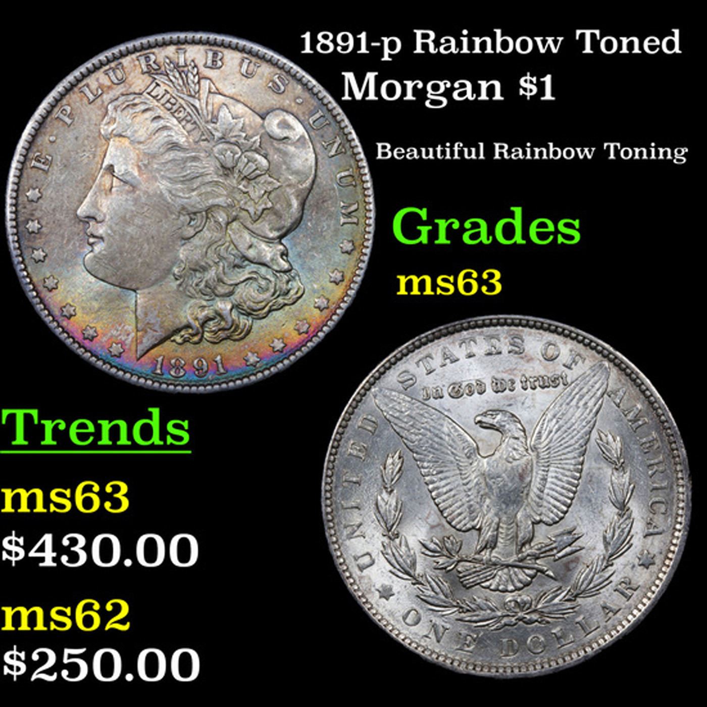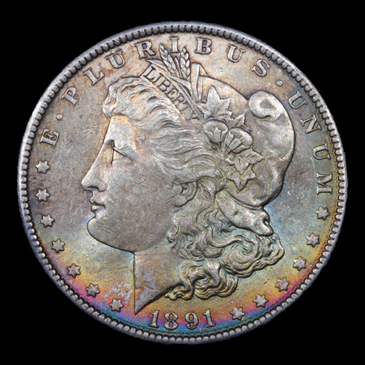 1891-p Rainbow Toned Morgan Dollar $1 Grades Select Unc.