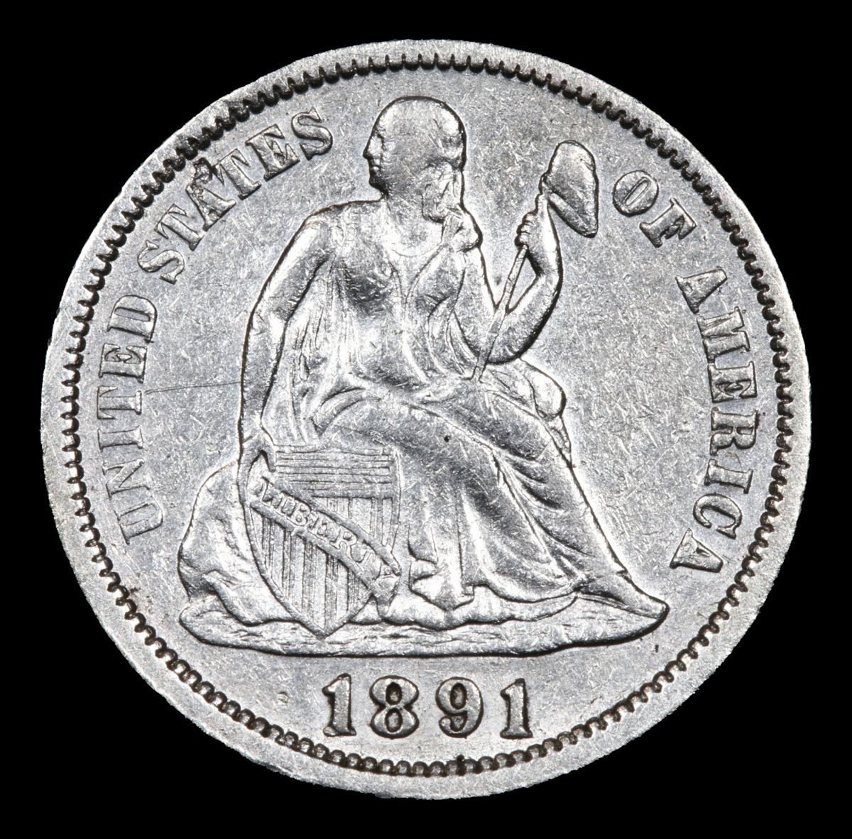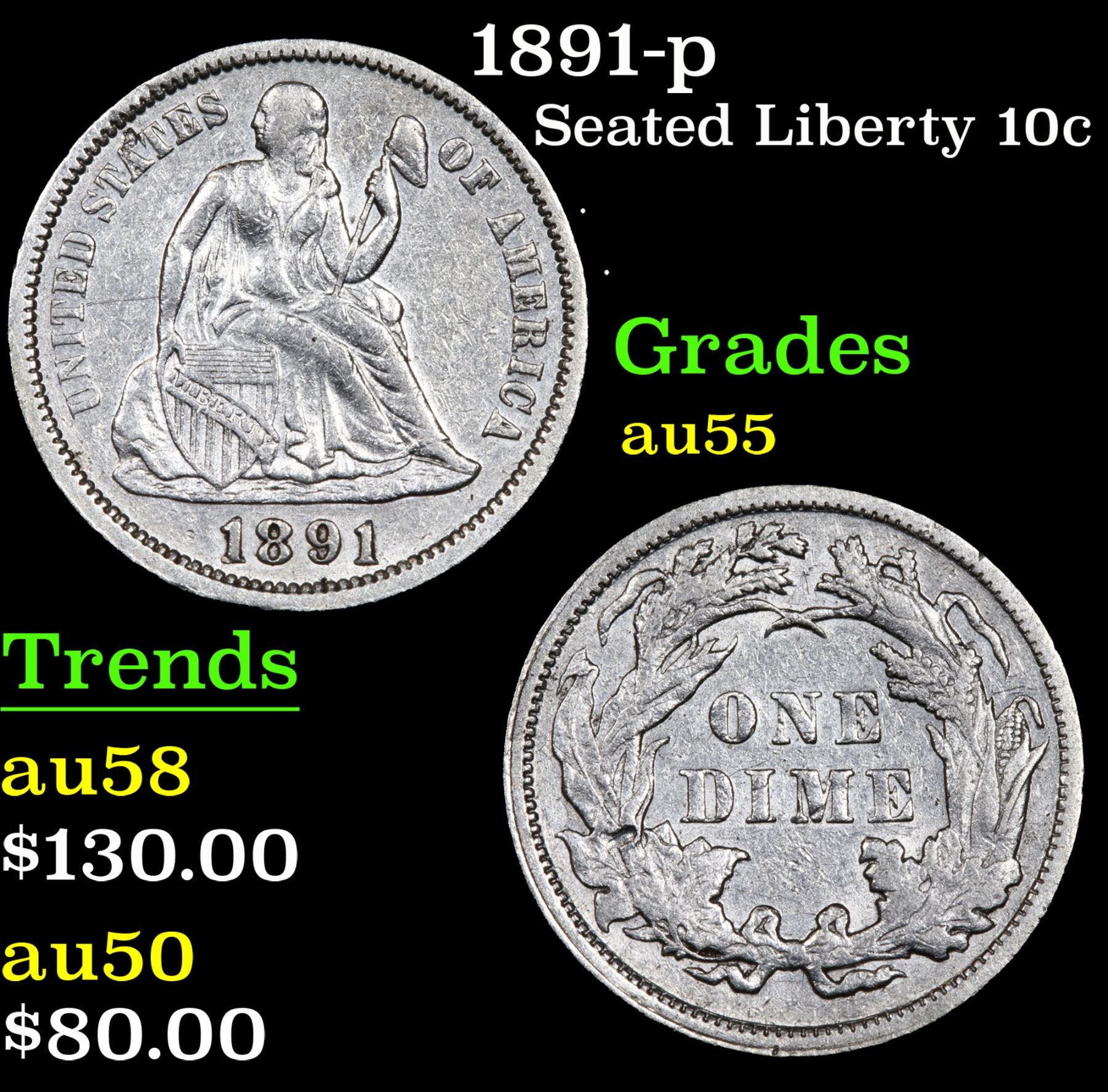 1891-p . . Seated Liberty Dime 10c Grades Choice AU.