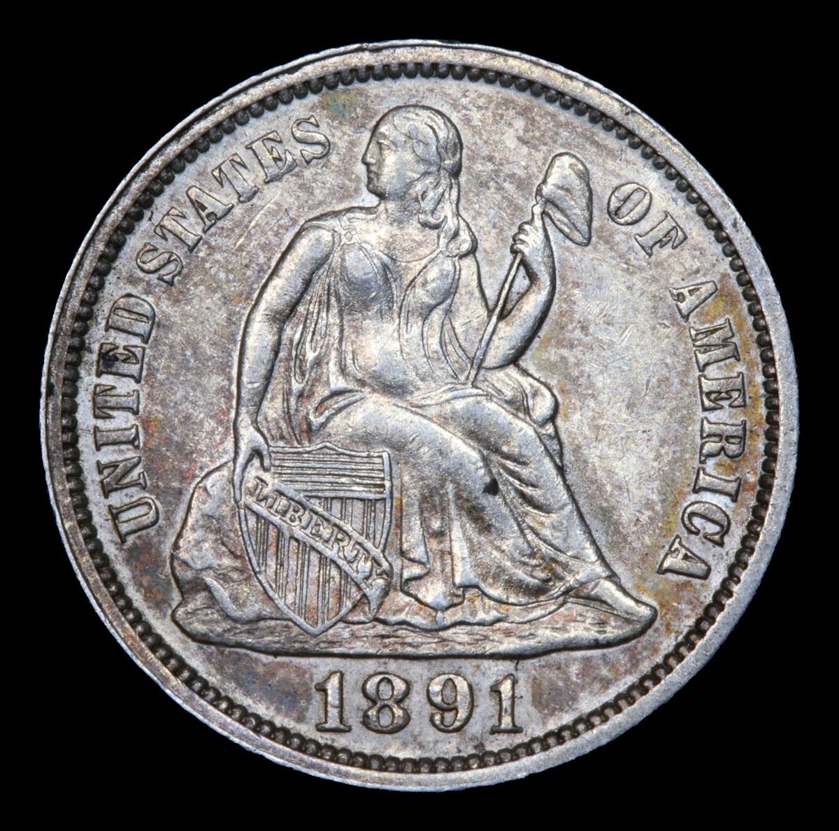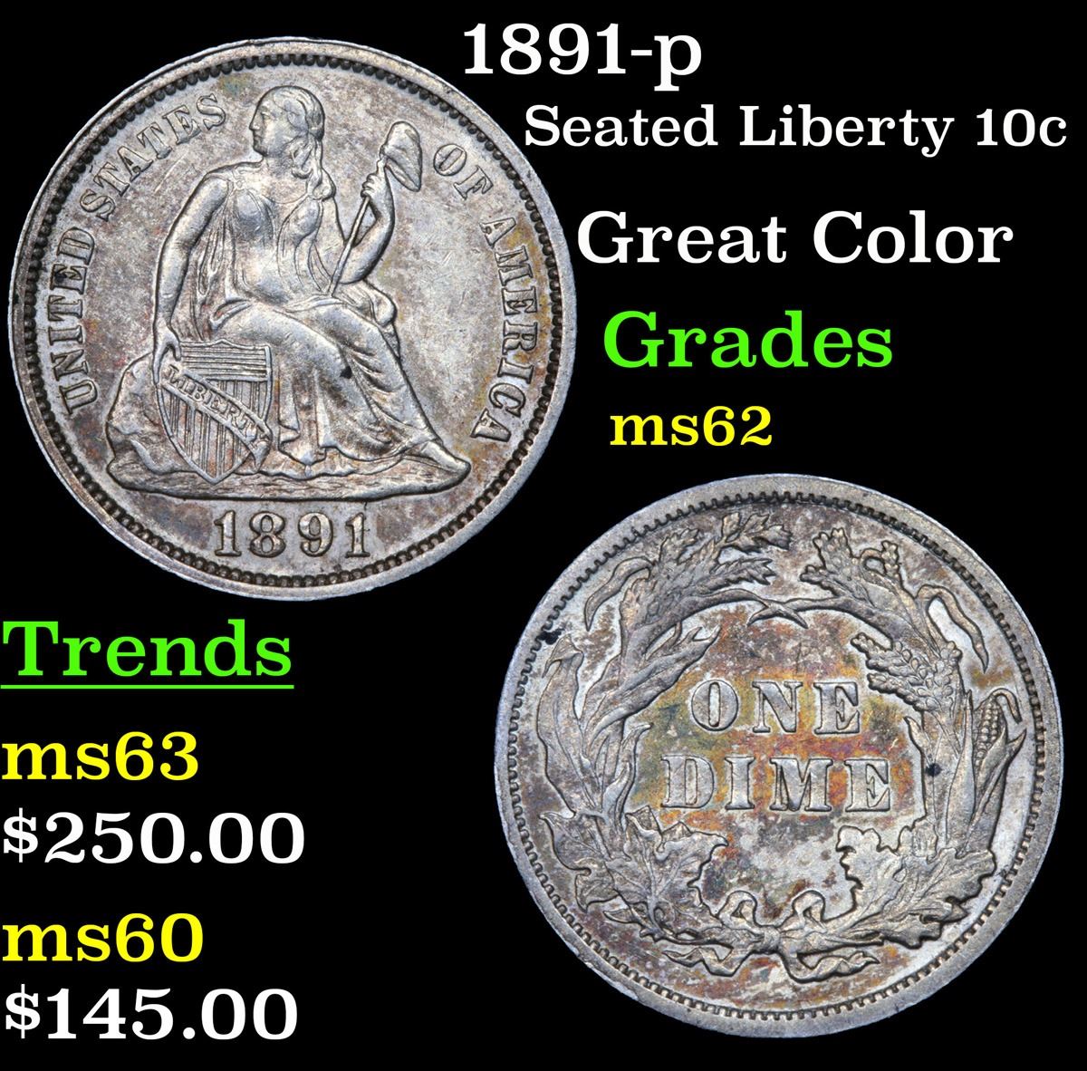 1891-p Great Color . Seated Liberty Dime 10c Grades Select Unc.