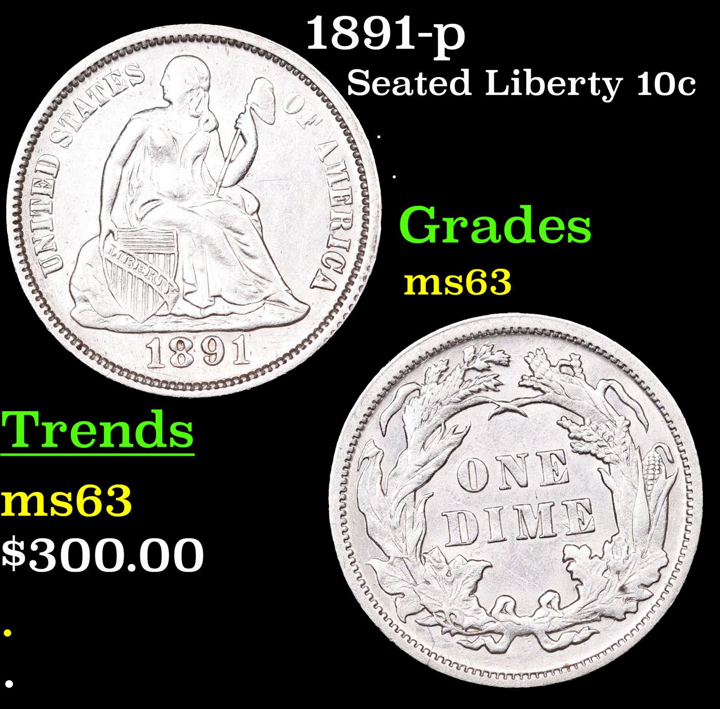 1891-p Seated Liberty Dime 10c Grades Select Unc.