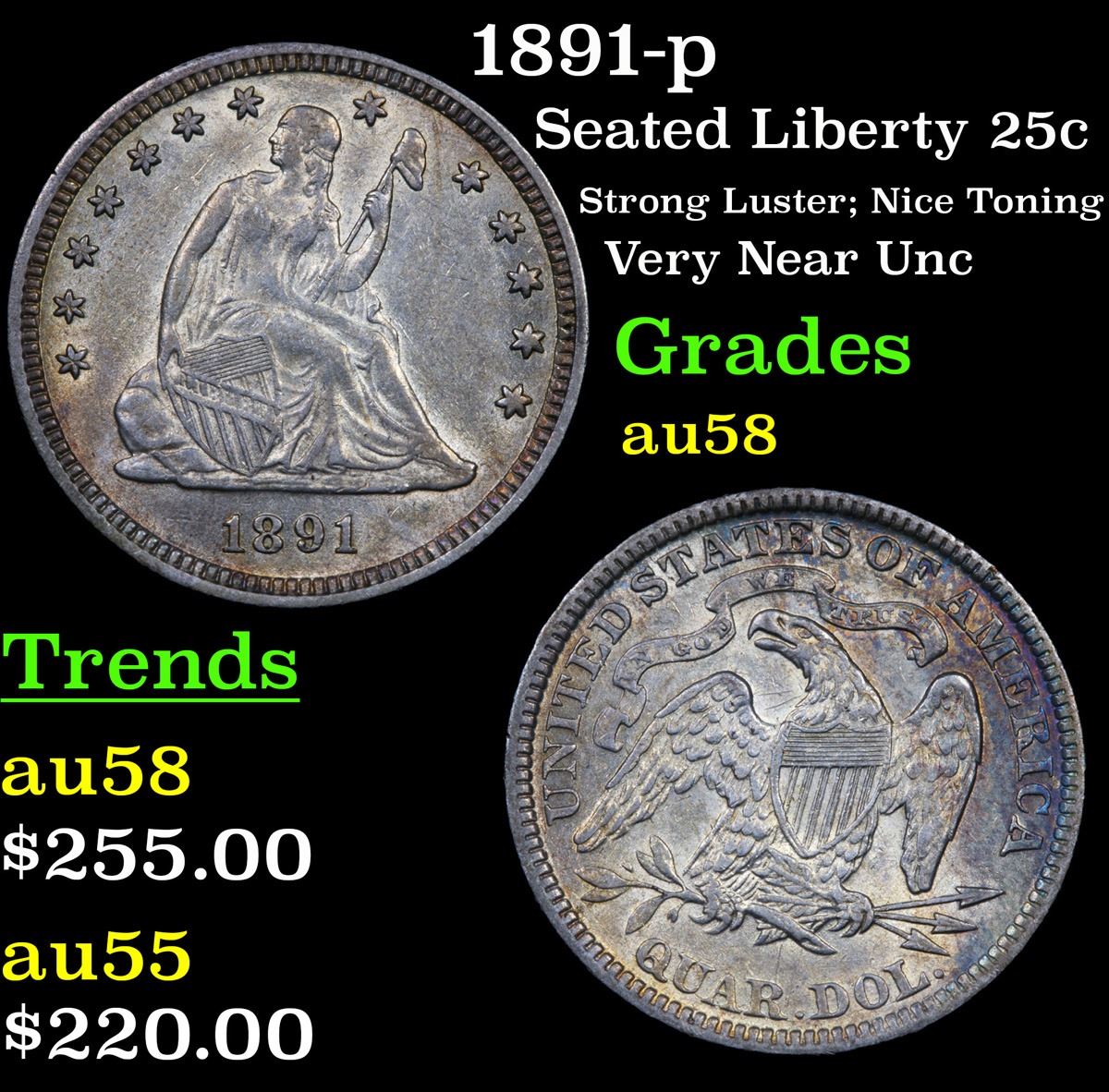 1891-p Seated Liberty Quarter 25c Grades Choice AU/BU Slider.
