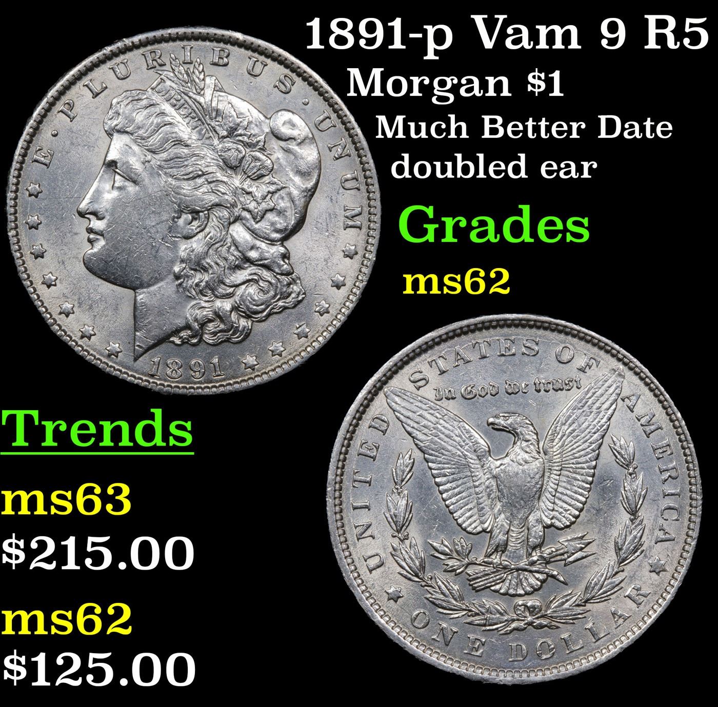 1891-p Vam 9 R5 Morgan Dollar $1 Grades Select Unc.