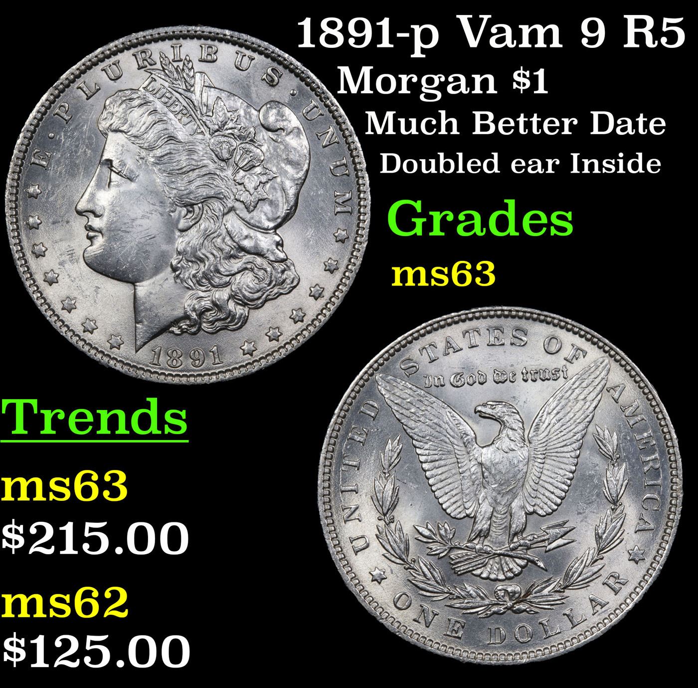1891-p Vam 9 R5 Morgan Dollar $1 Grades Select Unc.