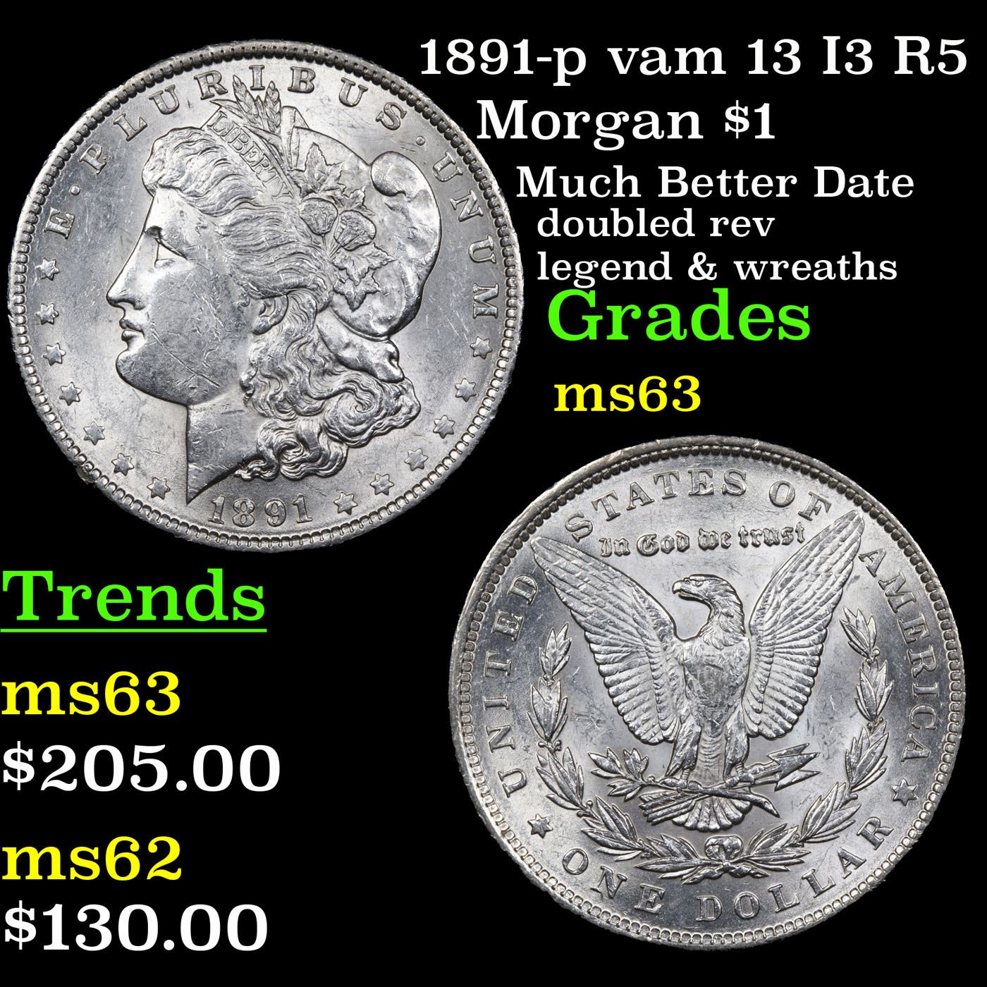 1891-p vam 13 I3 R5 Morgan Dollar $1 Graded Select Unc. 0