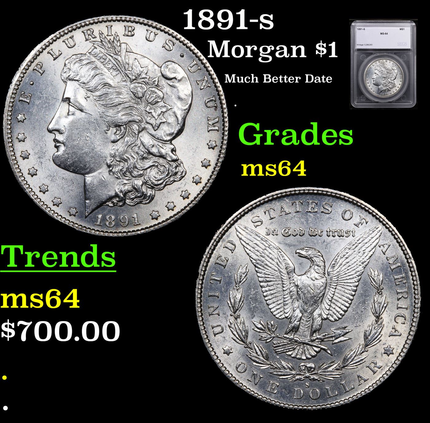 1891-s Morgan Dollar $1 Graded ms64 By SEGS.