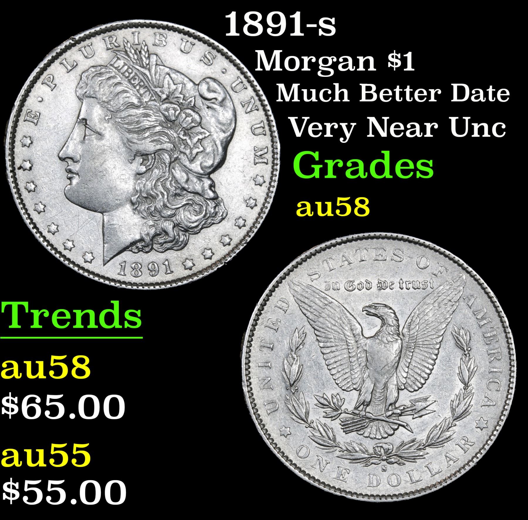 1891-s Much Better Date Very Near Unc Morgan Dollar $1 Grades Choice AU/BU Slider.