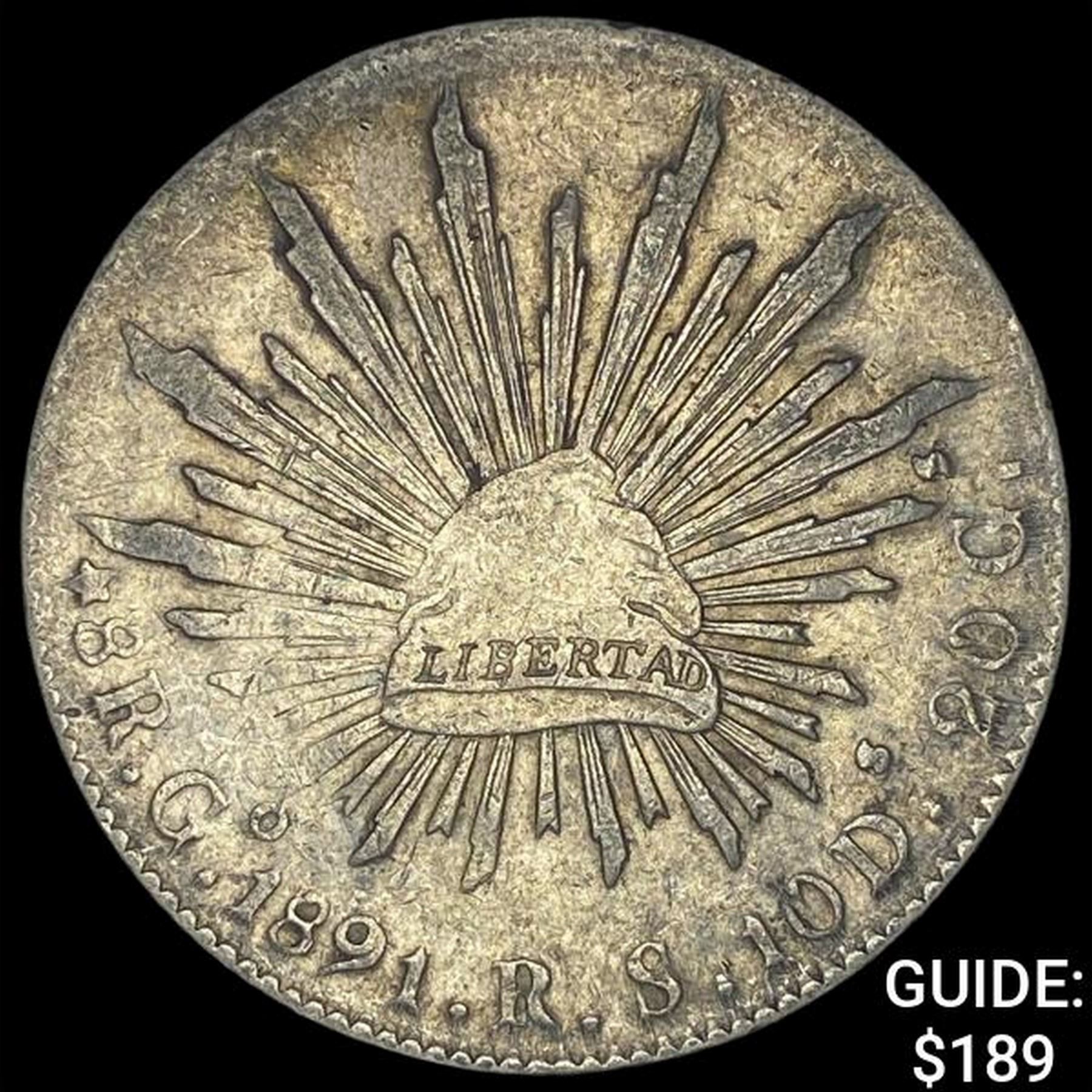 1891Go RS Mexico Silver 8 Reales Cap & Ray CLOSELY UNCIRCULATED