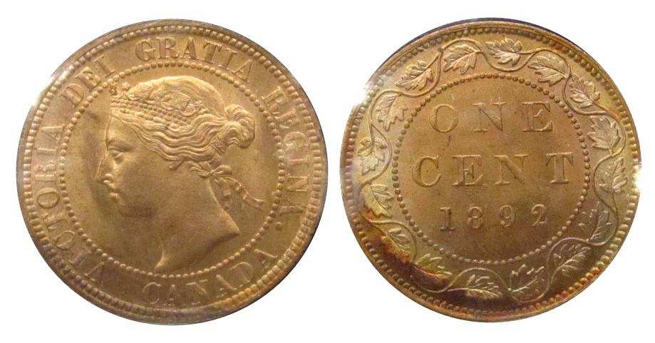 1892 1¢ ICCS MS66 Red PQ. An exceptionally attractive Victorian Large cent with intense mint frost. The surfaces exhibit deep orange aside from a trace of olive on the highpoints of the design. Tied for finest.