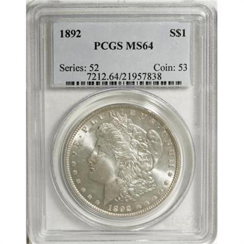 <B>1892 $1 MS64 PCGS.</B></I> Delicate layers of gold and peach patina add color to this otherwise silver-gray Philadelphia piece. Pleasingly detailed with few marks overall, though a shallow abrasion at the upper left obverse precludes a Gem grade.<BR><BR><B>Coin Engraver:</B> George T. Morgan<BR><BR><b>Shipping:</b> Coins & Currency (<a target="_blank" href="http://www.heritageauctions.com/common/shipping.php">view shipping information</a>)