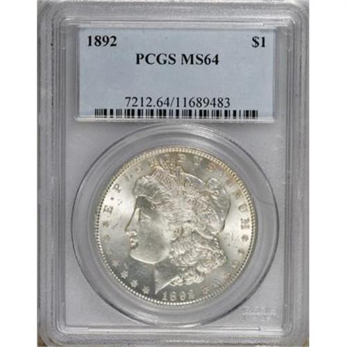 <B>1892 $1 MS64 PCGS.</B></I> PCGS Population (1125/202). NGC Census: (641/83). Mintage: 1,037,245. Numismedia Wsl. Price for NGC/PCGS coin in MS64: $770. (#7212)<BR><BR><B>Coin Engraver:</B> George T. Morgan<BR><BR><b>Shipping:</b> Coins & Currency (<a target="_blank" href="http://www.heritageauctions.com/common/shipping.php">view shipping information</a>)