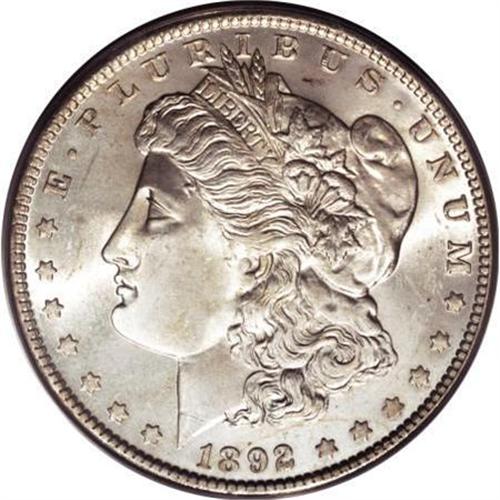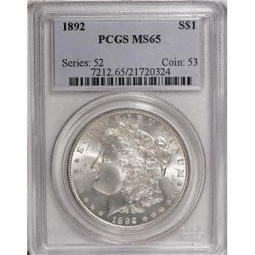 <B>1892 $1 MS65 PCGS.</B></I> The 1892 silver dollars show wide variance in luster and strike, but on both counts, this desirable Gem trumps the norm. The central devices show excellent definition, and the essentially untoned fields offer powerful luster. Marvelous visual appeal in every respect. PCGS has certified a mere two finer pieces (1/08).<BR><I>From The Oxford Collection.</B></I><BR><BR><B>Coin Engraver:</B> George T. Morgan<BR><BR><b>Shipping:</b> Coins & Currency (<a target="_blank" href="http://www.heritageauctions.com/common/shipping.php">view shipping information</a>)