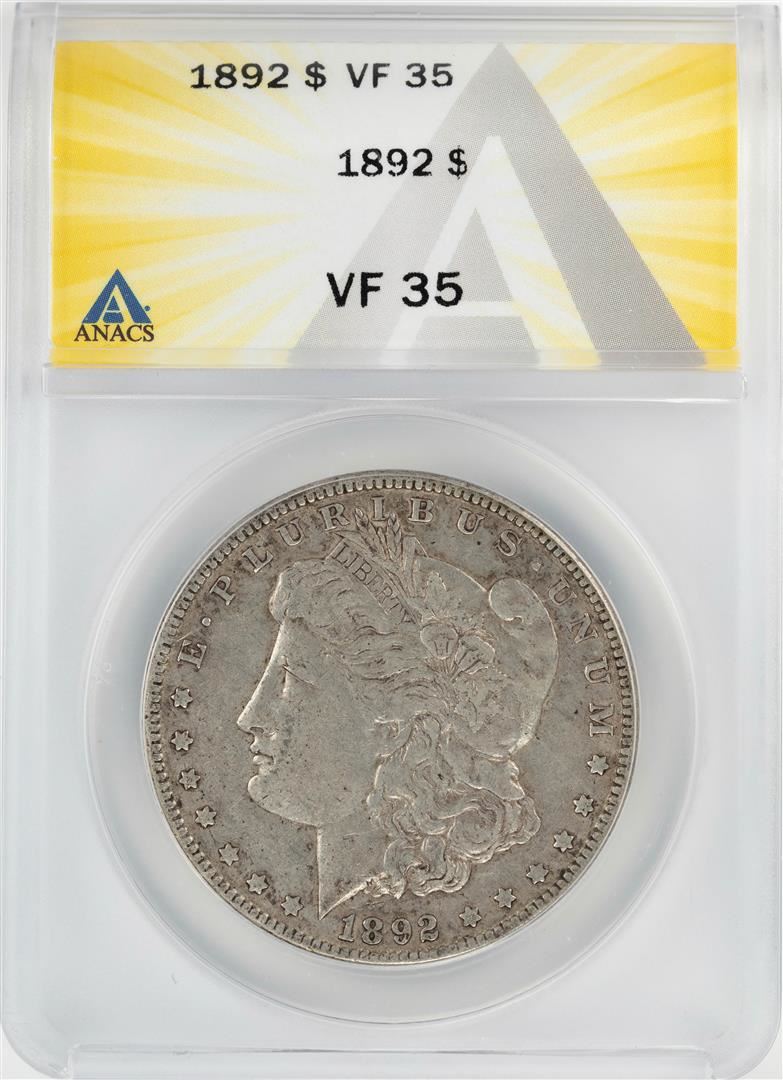 One 1892 $1 Morgan Silver Dollar Coin ANACS VF35. ANACS Certified.