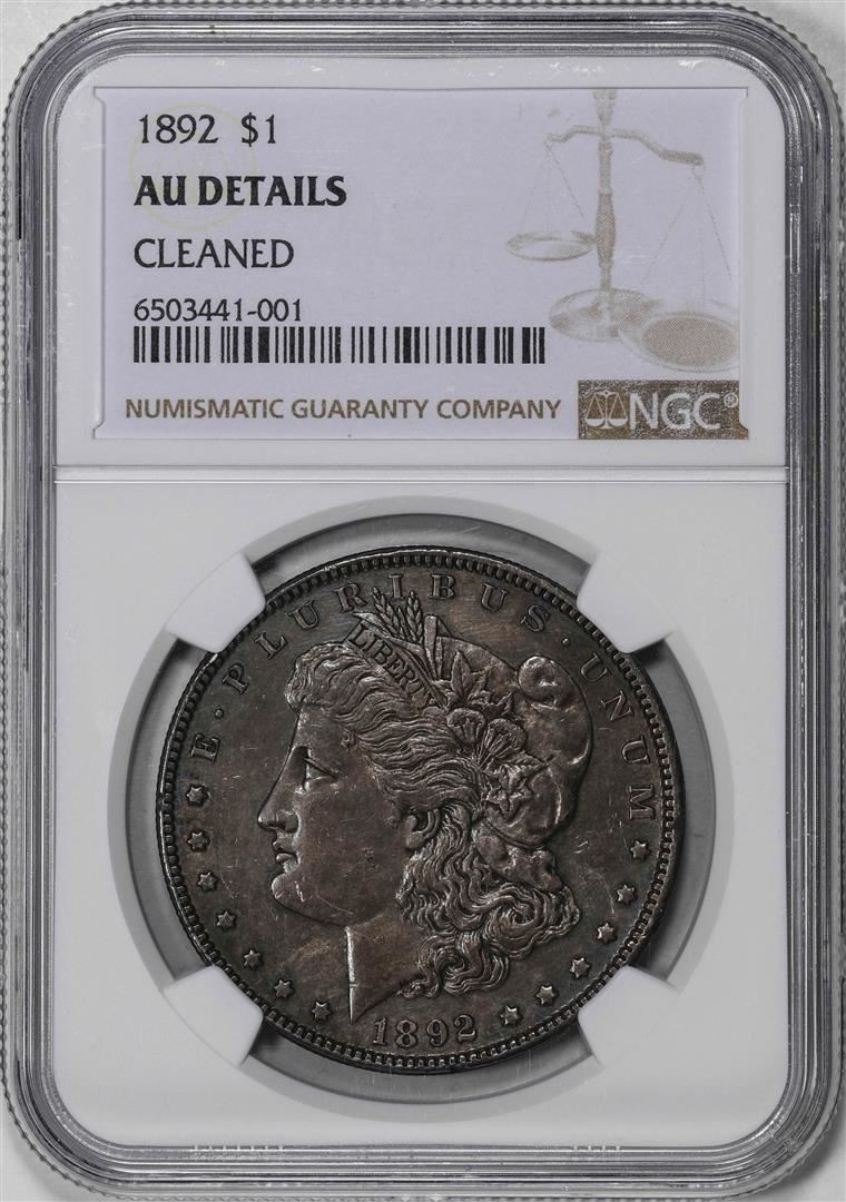 One 1892 $1 Morgan Silver Dollar Coin NGC AU Details. NGC Certified.